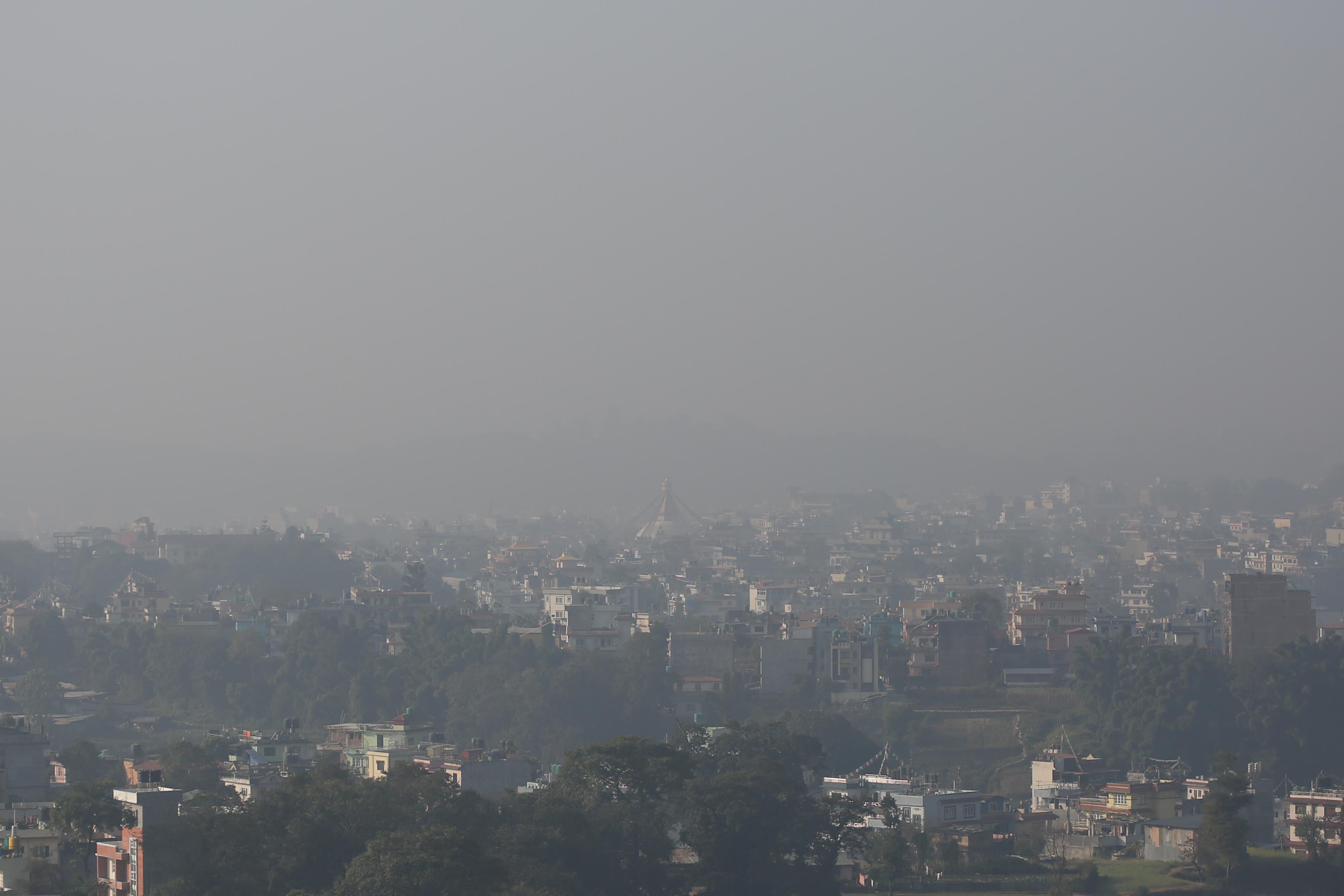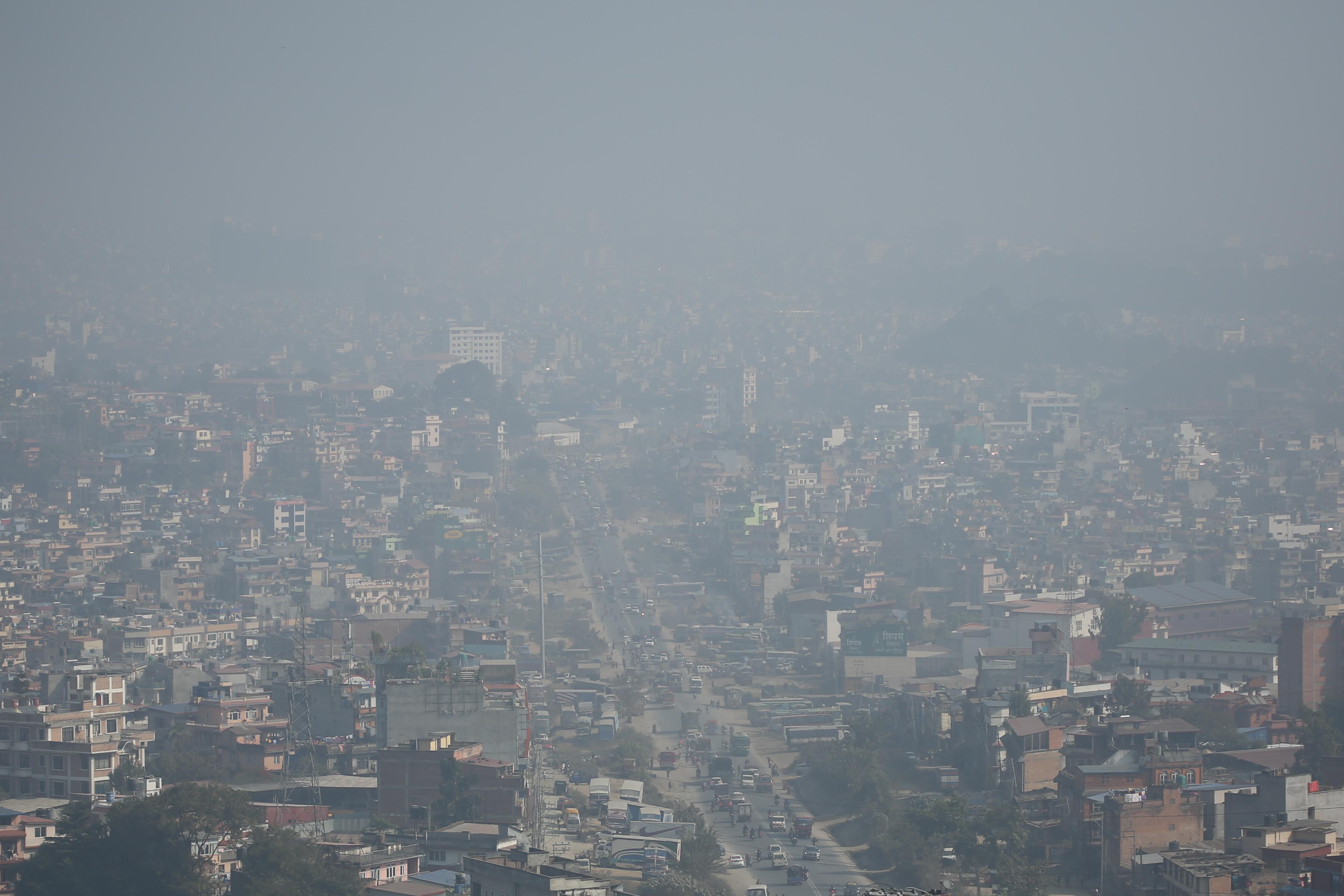 काठमाडौँ उपत्यका वायु प्रदूषणका कारण ‘अस्वस्थकर’ बनेको छ। बिहीबार उपत्यकाको वायुको गुणस्तर तह एक्यूआई १७५ पुगेको छ। तस्वीर: नेपाल फोटो लाइब्रेरी।