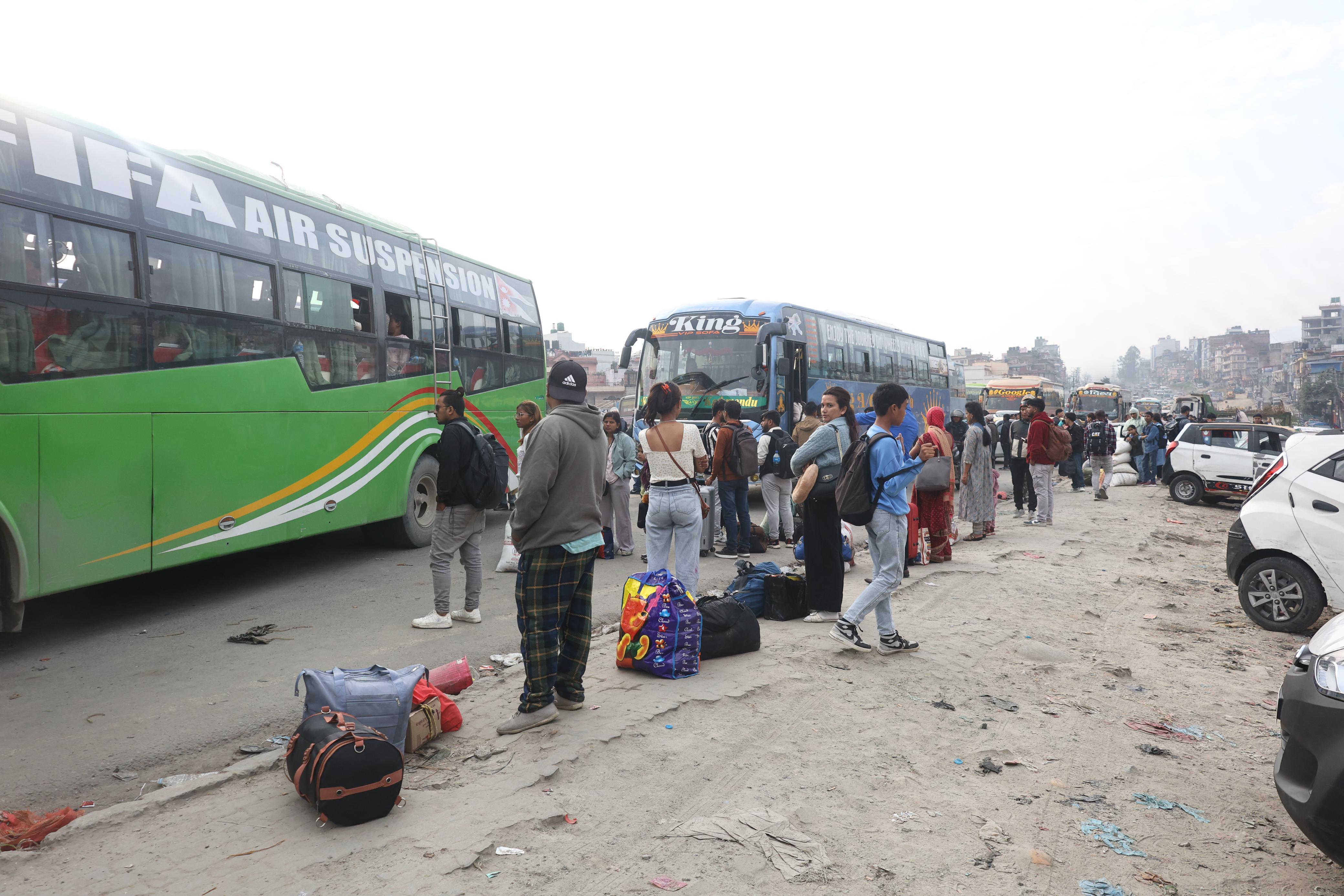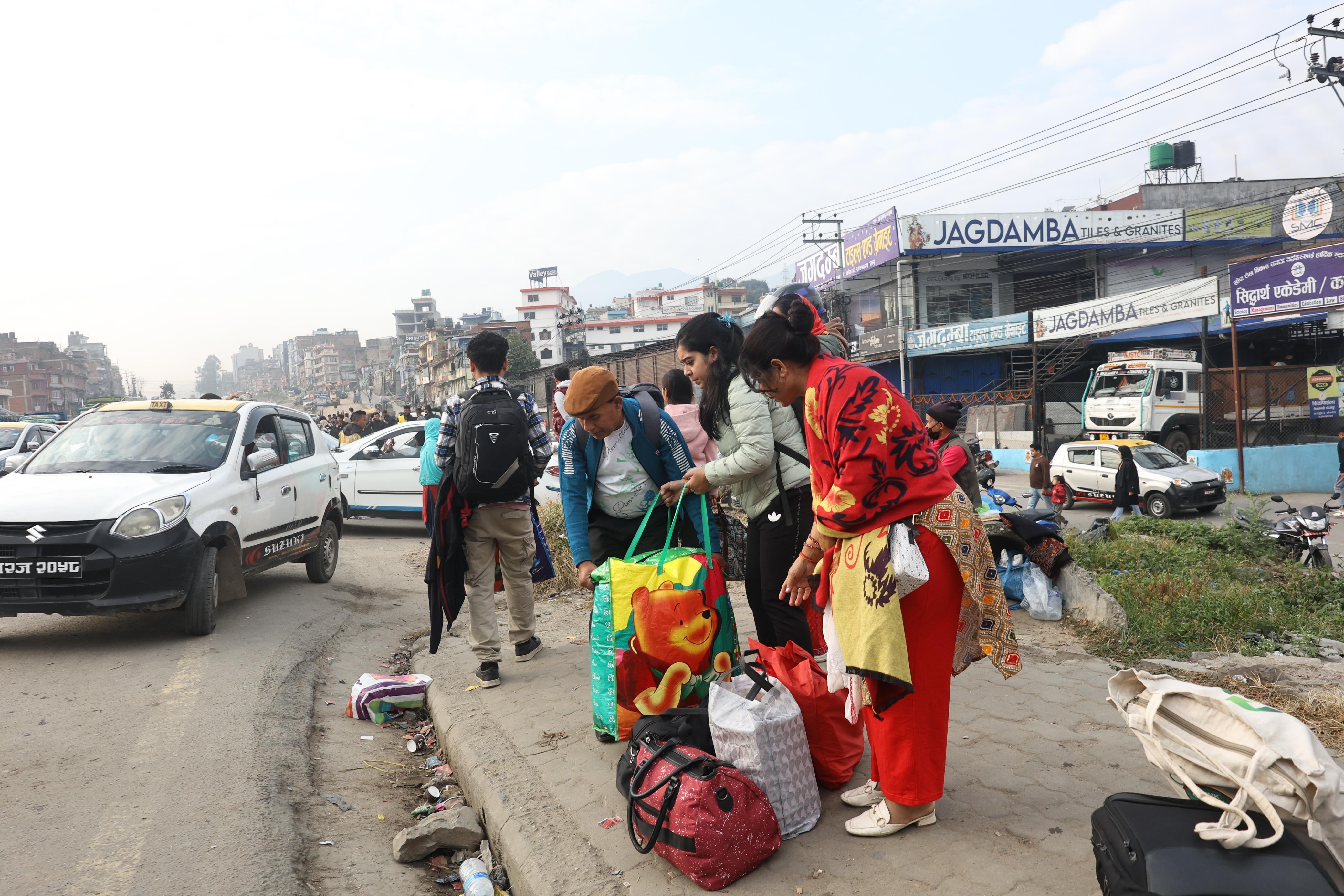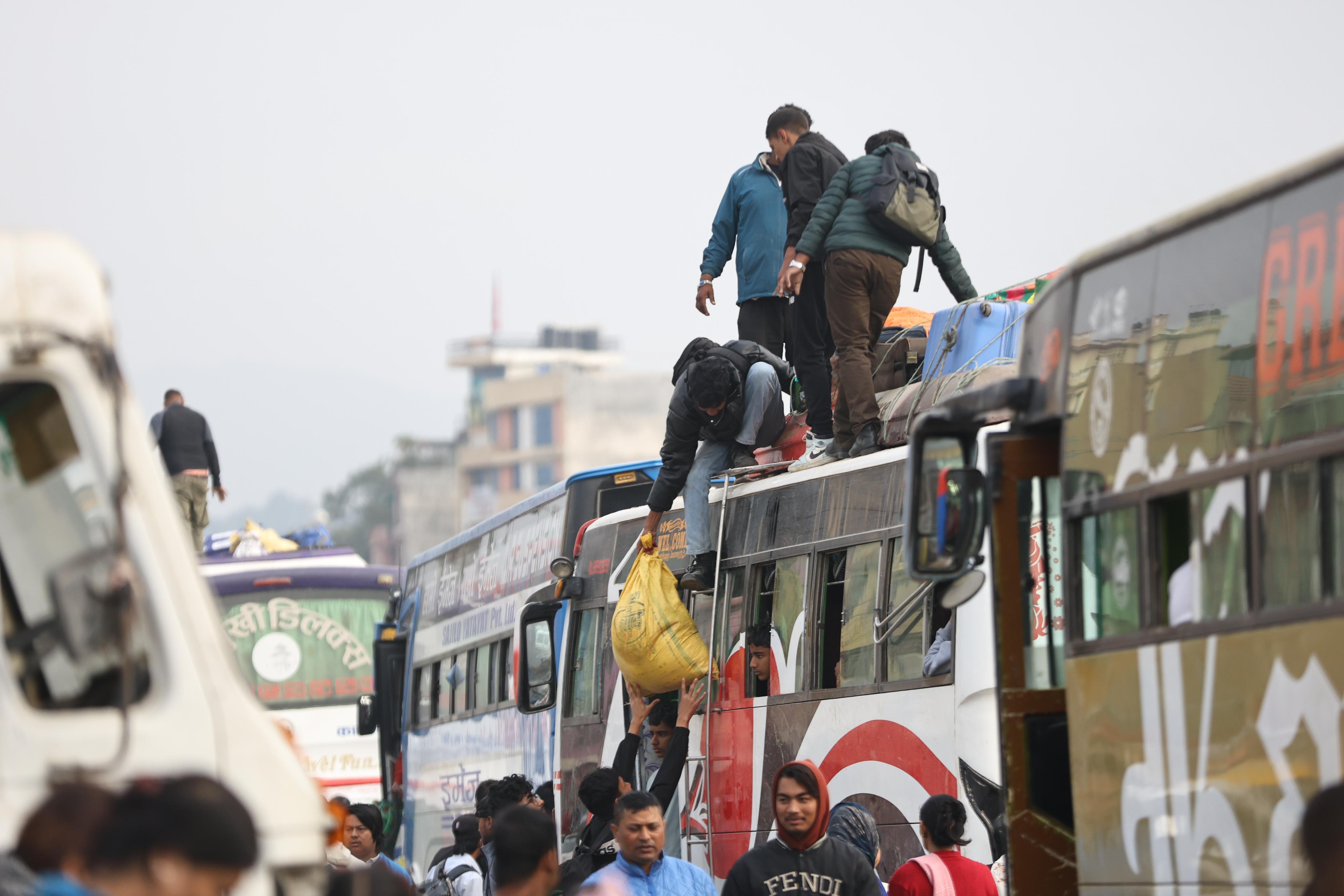 दशैँ, तिहार र छठ मनाउन गएकाहरू काठमाडौँ फर्किन थालेका छन्। काठमाडौँको कलंकी, थानकोट तथा भक्तपुरका नाकामा राजधानी फर्किनेको भिड लाग्न थालेको छ। चाडपर्व मनाउन काठमाडौँ छाडेकामध्ये शुक्रबारसम्म ९० प्रतिशत काठमाडौँ भित्रिइसकेको ट्राफिक प्रहरीले जनाएको छ। तस्वीर: फोटो लाइब्रेरी\r\n