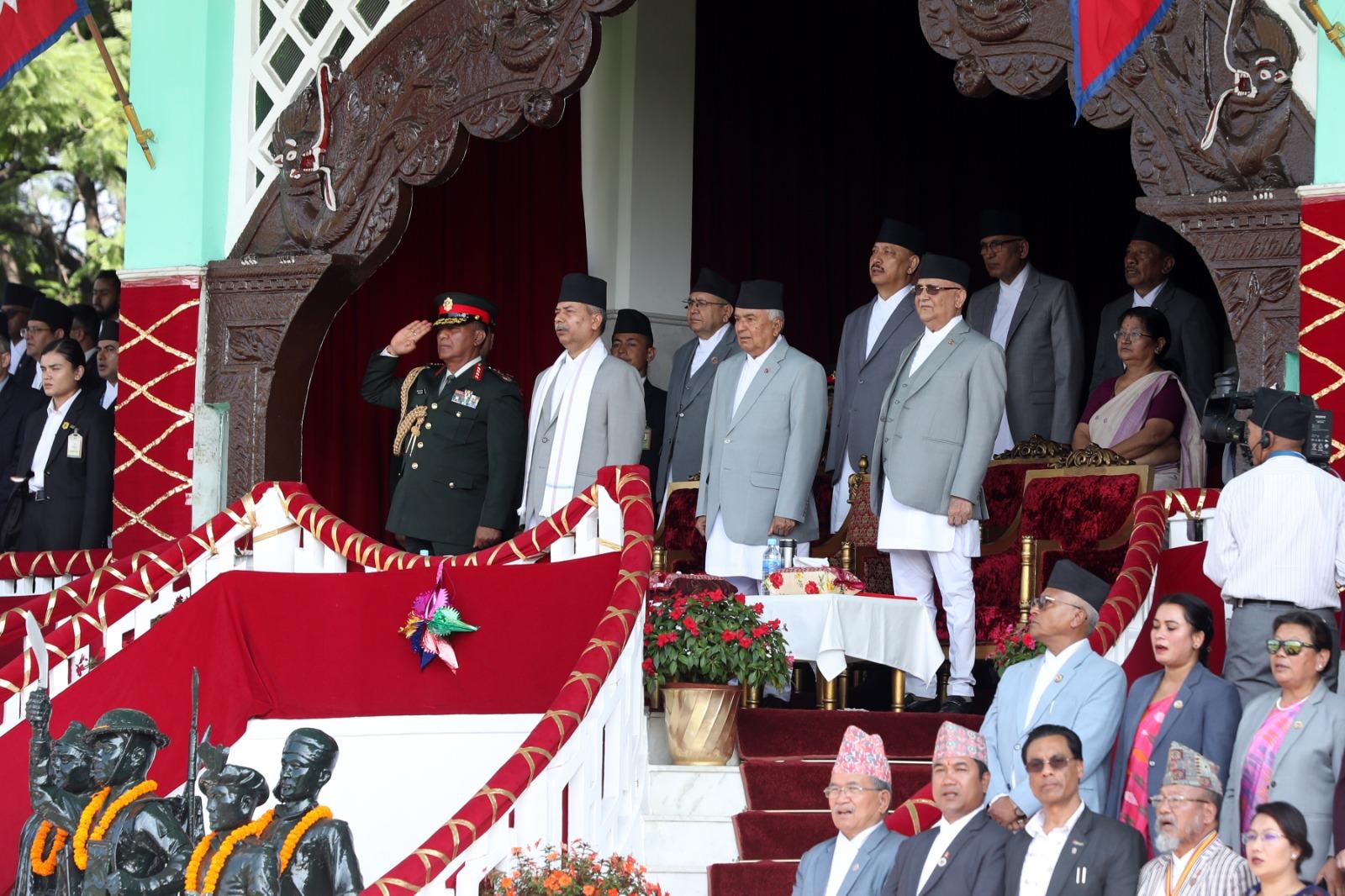 नेपालको संविधान जारी भएको दिनको खुशीयालीमा बिहीबार संविधान दिवस मनाइँदै छ। दिवसका अवसरमा देशभर तथा विदेशस्थित नेपाली नियोगहरूमा विभिन्न कार्यक्रम आयोजना गरिएका छन् । काठमाडौँस्थित सैनिक मञ्च टुँडिखेलमा आयोजना गरिएको संविधान दिवस मूल समारोहमा राष्ट्रपति रामचन्द्र पौडेल प्रमुख अतिथिका रूपमा सहभागी भएका छन्। त्यस अवसरमा संविधान दिवस मूल समारोह समितिका अध्यक्ष एवं प्रधानमन्त्री केपी शर्मा ओलीले सम्बोधन गरेका छन्। साँझ राष्ट्रपति पौडेलले राष्ट्रपति भवनमा स्वागत समारोह आयोजना गर्ने कार्यक्रम छ। नेपालको संविधान २०७२ असोज ३ गते जारी भएको थियो। यो नेपालको सातौँ संविधान हो।