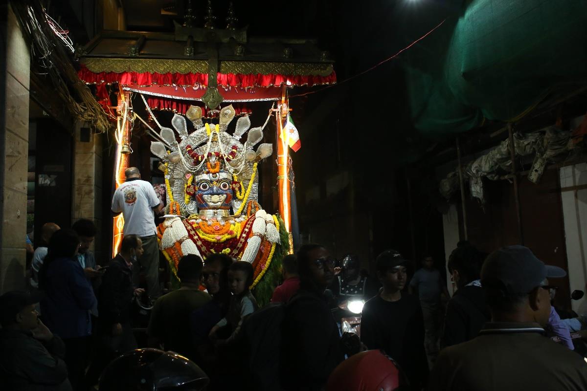 हनुमानढोका दरबार क्षेत्र जात्रामय भएको छ। आइतबार काल भैरवको मूर्ति अगाडि लिंगो ठड्याइएपछि काठमाडौँ उपत्यकामा इन्द्रजात्रा शुरू भएको हो। प्रत्येक वर्ष भाद्र शुक्ल द्वादशीका दिन इन्द्रध्वजोत्थान गर्ने परम्परा छ। आठ दिनसम्म राजधानीमा विभिन्न कार्यक्रम गरी इन्द्रजात्रा पर्व मनाइन्छ। तस्वीर : नेपाल फोटो लाइब्रेरी।