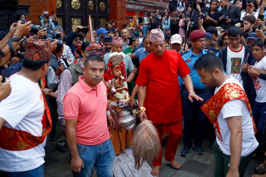 इन्द्रजात्राको अन्तिम दिन नानी चाः महिलाहरूले जीवित देवी कुमारी, गणेश र भैरवको रथ तानेका छन्। रथलाई किलागल: इन्द्रचोक हुँदै वसन्तपुर पुर्याइन्छ, सोमबार राति ८ः३७ बजे इन्द्रध्वज प्रदान गरिन्छ र यसै समारोह बीच राष्ट्रप्रमुखद्वारा कुमारीको प्रसाद ग्रहण गर्ने प्रचलन रहेको छ।