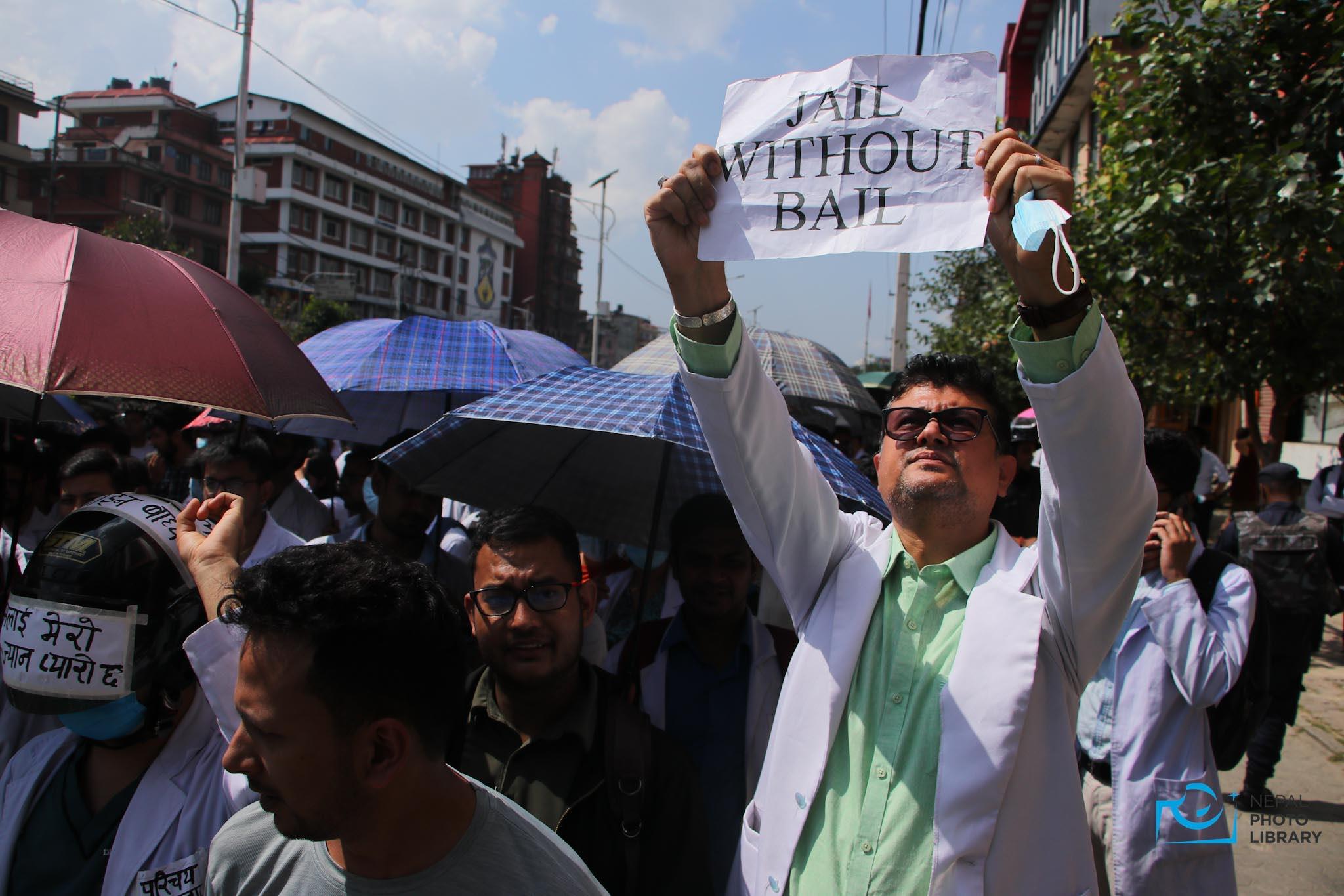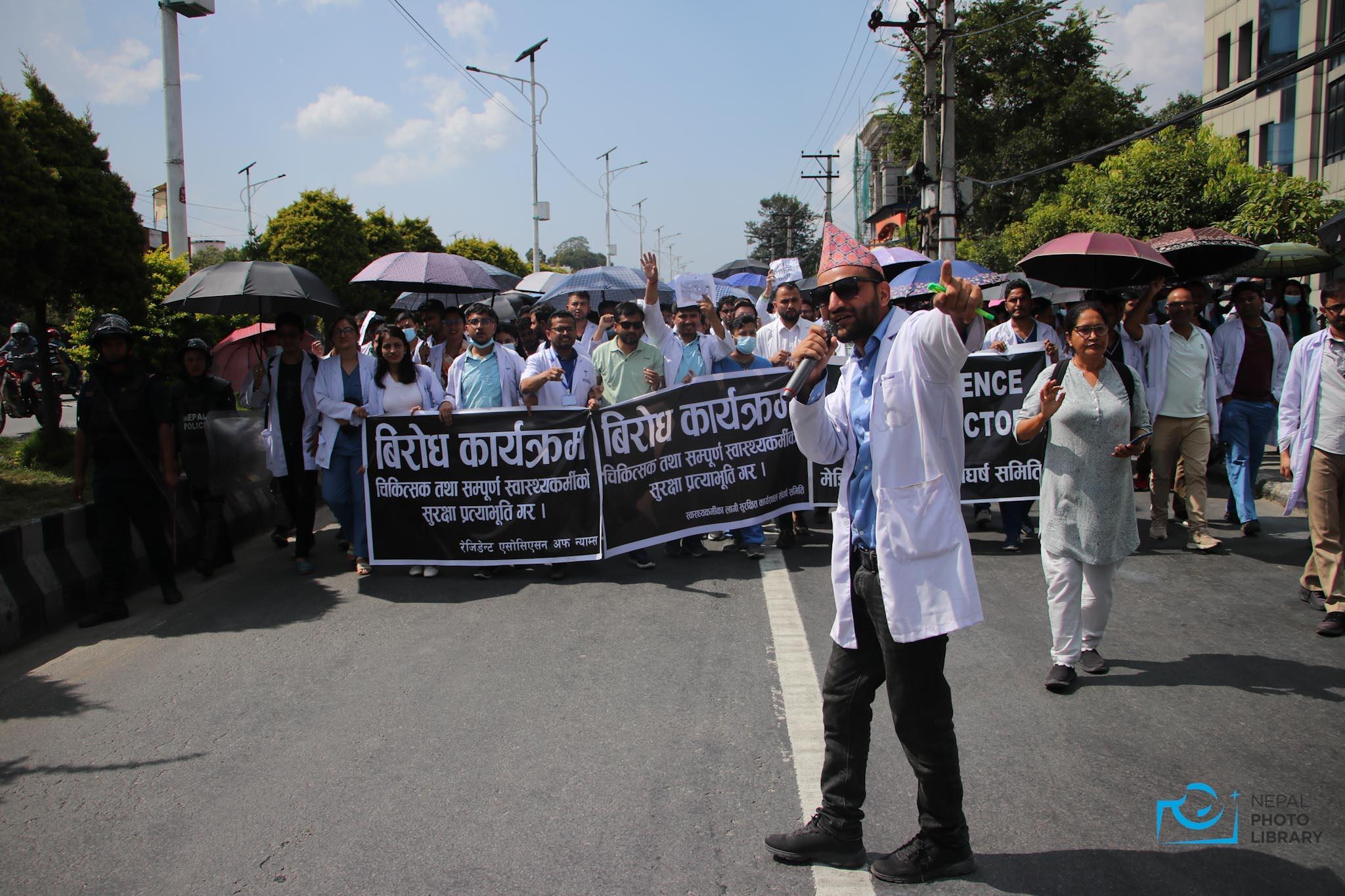 स्वास्थ्यकर्मीहरू तेस्रो दिन बिहीबार माइतीघरदेखि बानेश्वरसम्म विरोध प्रदर्शनसहित शान्तिपूर्ण र्याली गरेका छन्। विभिन्न बहानामा स्वास्थ्यकर्मीहरूमाथि आक्रमण, दुर्व्यवहार एवं कुटपिट भएको भन्दै उनीहरू त्यसको विरोधमा विगत तीन दिनदेखि आन्दोलनमा छन्। दोषीलाई कारबाही नहुँदासम्म आन्दोलन जारी राख्ने उनीहरूको अडान छ। उनीहरूले चिकित्सक तथा स्वास्थ्यकर्मीको सुरक्षा प्रत्याभूति गर्नुपर्ने लगायतका माग राखेका छन्।