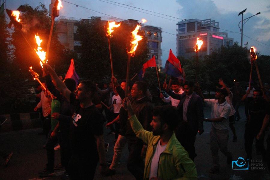एलपी ग्यास, पेट्रोलियम पदार्थ, खाद्यान्न लगायत अन्य उपभोग्य वस्तुहरूमा भइरहेको अस्वाभाविक मूल्यवृद्धिविरुद्ध प्रमुख प्रतिपक्षी दल नेकपा एमालेनिकट राष्ट्रिय युवा संघ, नेपालले शनिबार काठमाडौँको बानेश्वरमा मसाल जुलुससहित विरोध प्रदर्शन गरेका छ। प्रदर्शनकारीले राष्ट्रिय युवा संघ नेपालको कार्यालयदेखि मसाल बाल्दै मुख्य सडकमा प्रवेश गरेर सडक एकछिन अवरोध गरेका थिए। राष्ट्रिय युवा संघले शनिबार ७७ जिल्लामै एकसाथ विरोध प्रदर्शन गरेको हो।