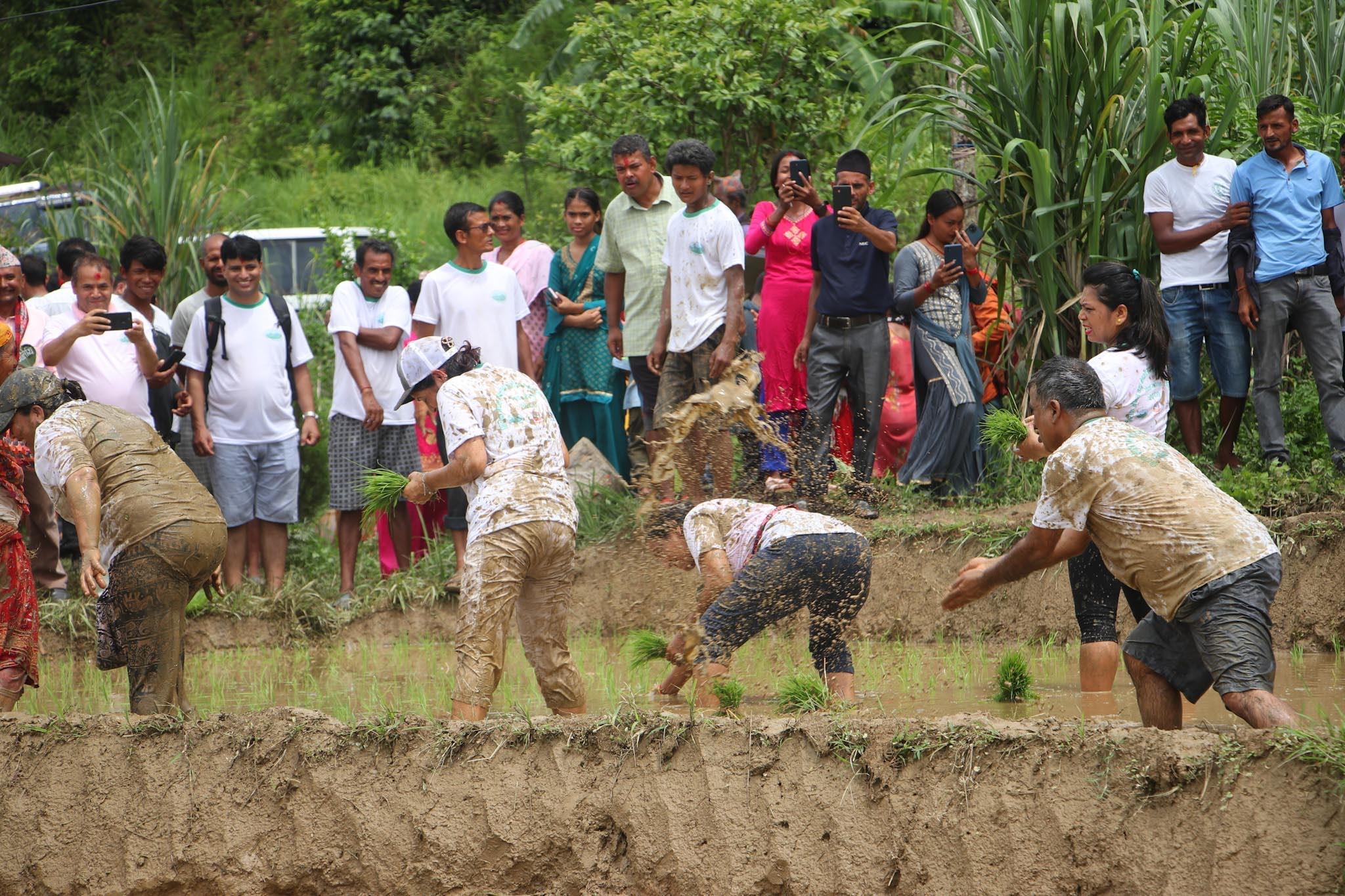 असार १५ का दिन धान रोपाइँलाई लिएर देशभर एकखाले उत्सवझैँ बन्ने गर्छ। यस दिनलाई ‘मानो रोपेर मुरी फलाउने दिन’ भनेर चिनिन्छ। पछिल्लो समय असार १५ लाई धान दिवसका रूपमा समेत मनाउन थालिएको छ। यो वर्ष ‘जलवायु अनुकूलित कृषकमैत्री प्रविधि, धान उत्पादनमा वृद्धि’ भन्ने नारासहित शुक्रबार २०औँ राष्ट्रिय धान दिवस तथा रोपाइँ महोत्सव मनाइँदै छ। सोही अवसरमा नुवाकोटको बेलकोट्गढी-१२, वासुकी गाउँमा भिटोफ नेपाल र बेल्कोटगढी गाउँपालिकाको संयुक्त आयोजना र नेपाल पर्यटन बोर्डको प्रवर्द्धनमा धान दिवस तथा रोपाइँ महोत्सव मनाइएको छ। तस्वीर : फोटो लाइब्रेरी