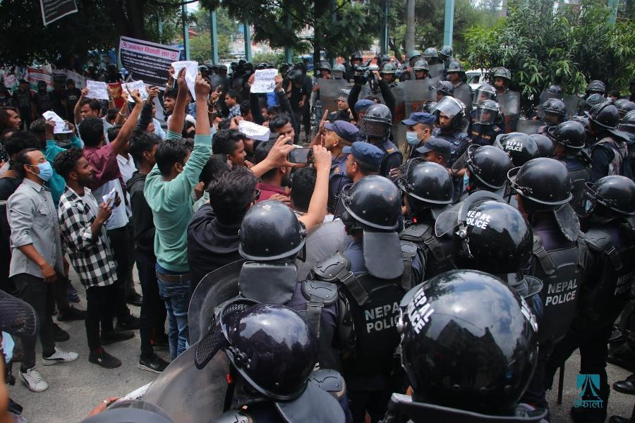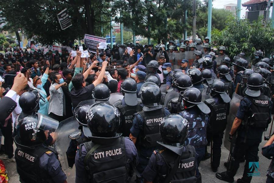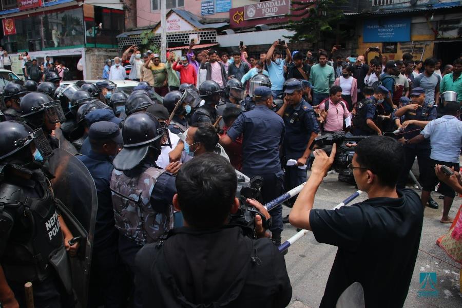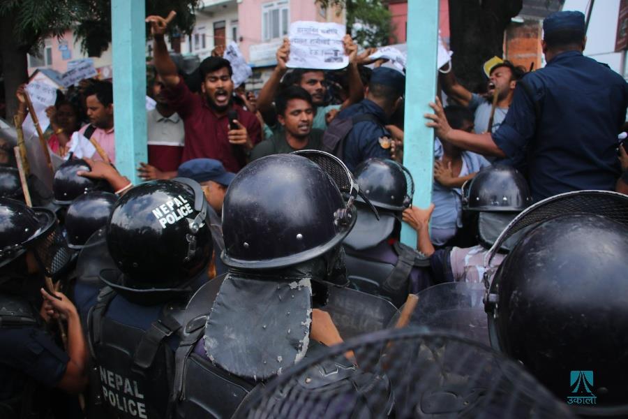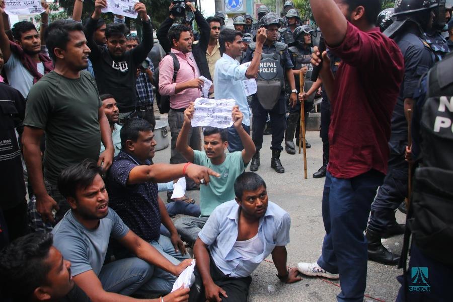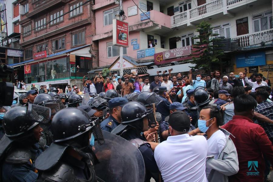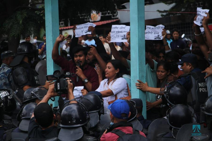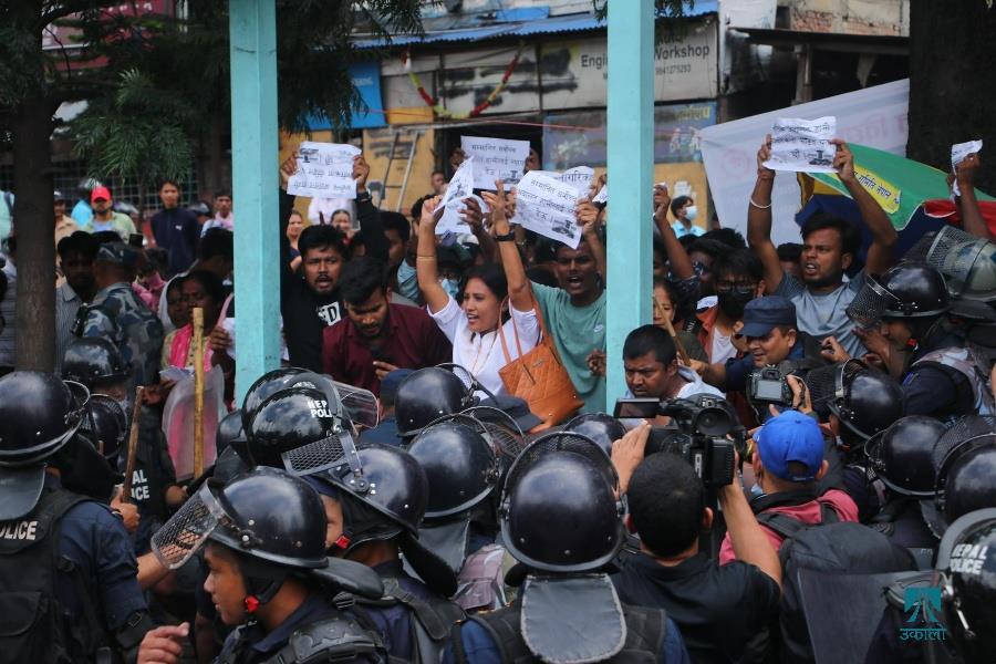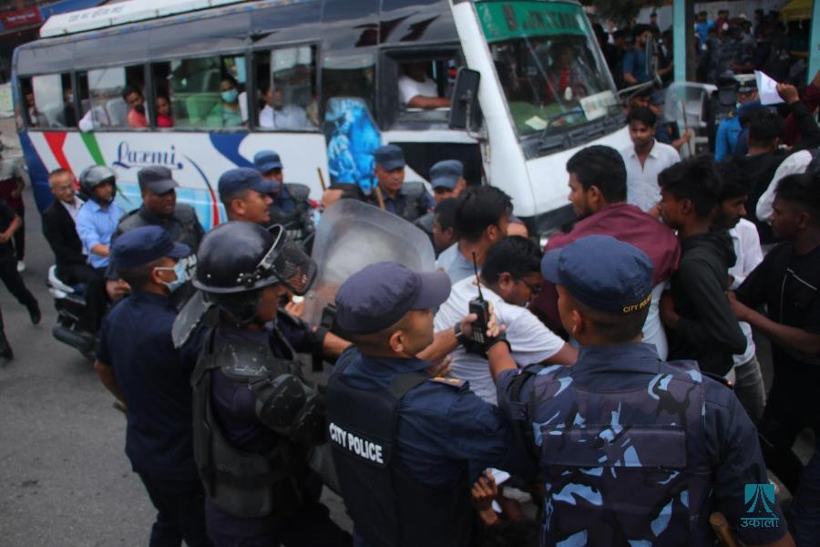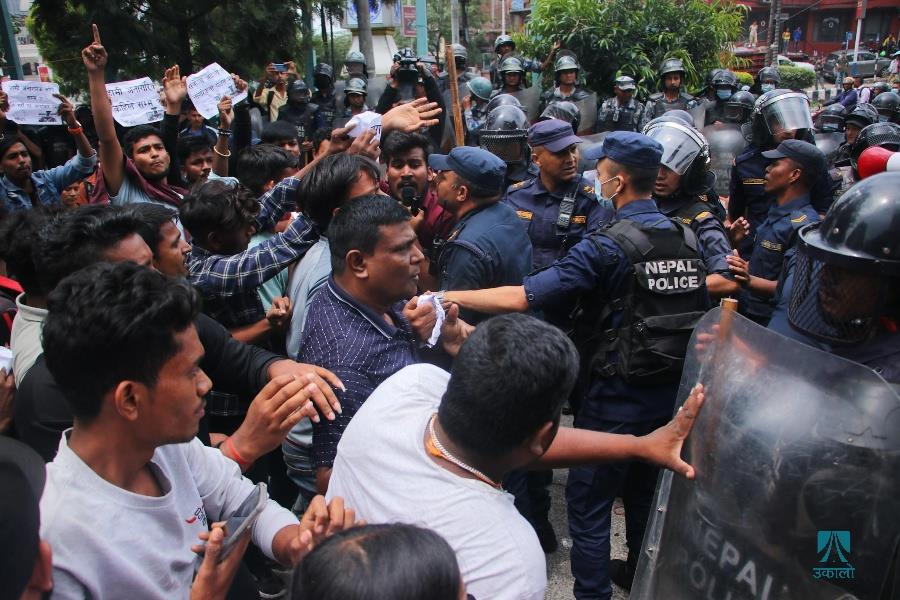 नागरिकताविहीन संघीय समिति र प्रहरीबीच झडप भएको छ। काठमाडौँको माइतीघरमा नागरिकताविहीन संघीय समितिका सदस्यहरूले निषेधित क्षेत्रमा प्रवेश गर्न खोजेपछि झडप भएको हो। नागरिकता विधेयक पारित भएलगत्तै सर्वोच्च अदालतमा परेको रिटमार्फत नागरिकता वितरण रोकिएपछि नागरिकताविहीन संघीय समितिले माइतीघरमा धर्ना दिँदै आएको छ। उनीहरूले आफूहरूले नागरिकता पाउनुपर्ने माग गरेका छन्।