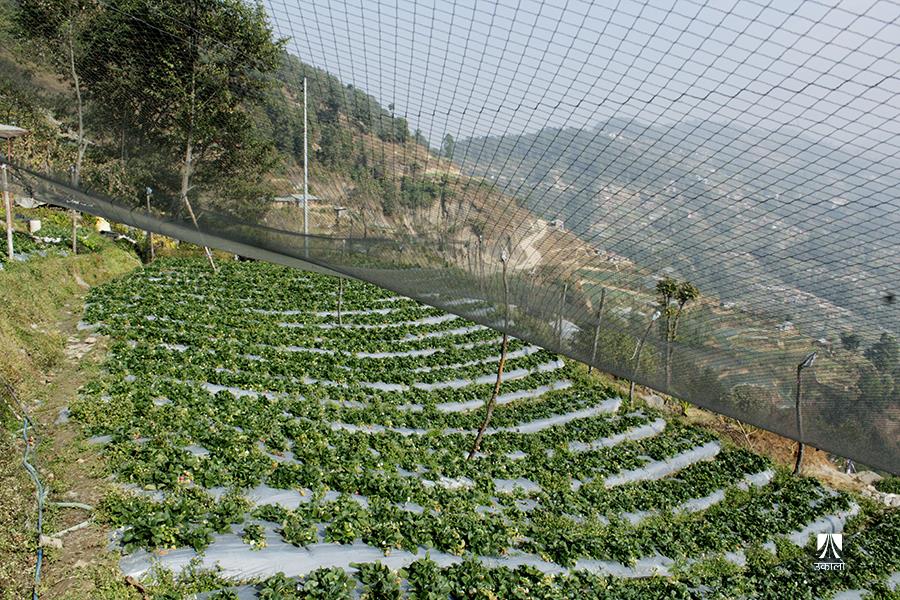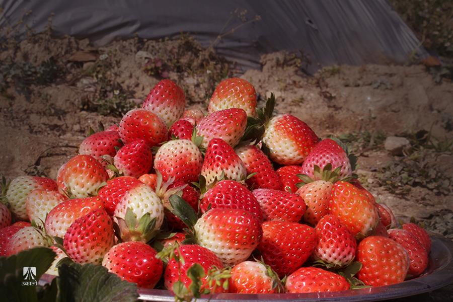 नुवाकोटको हिमाली क्षेत्र ककनीमा झण्डै ३ दशकअघि शुरू गरिएको स्ट्रबेरी खेती मौलाएको छ। यहाँको स्ट्रबेरी स्थानीय बजारका साथै काठमाडौँमा समेत बिक्री हुने गर्छ। तस्वीरः किसन पाण्डे/उकालो
