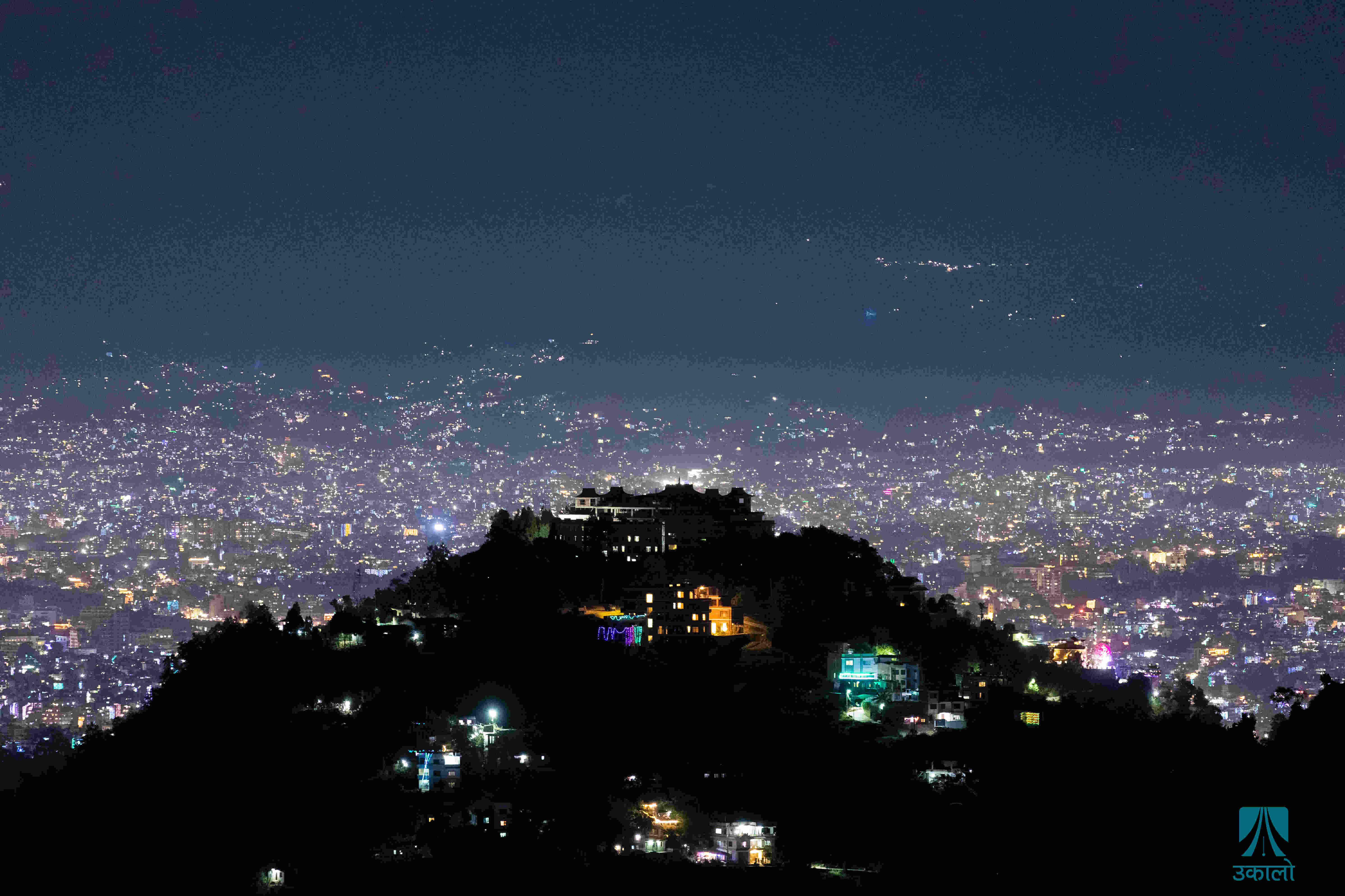 तिहार लागेसँगै काठमाडौँ उपत्यका झिलीमिली भएको छ। आइतबार बेलुका स्वयम्भूस्थत हलचोकबाट देखिएको काठमाडौँः