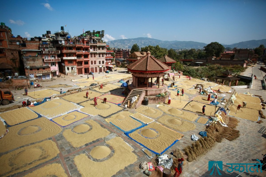 \nदशैँ सकिएसँगै भक्तपुरको योसिंखेलवासी धान थन्क्याउन व्यस्त भएको छन्। मौसम खुलेरसँगै योसिंखेलका किसानलाई धान झाँटेर सुकाउन भ्याइनभ्याइ छ। यहाँका किसानले परम्परागत रूपले धान सुकाएर भण्डारण गर्ने गर्छन्। असारमा रोपेको धान कात्तिक र मंसिरमा देशभर भण्डारण गर्ने गरिन्छ। तस्वीरहरू: अमित मचामसी\n