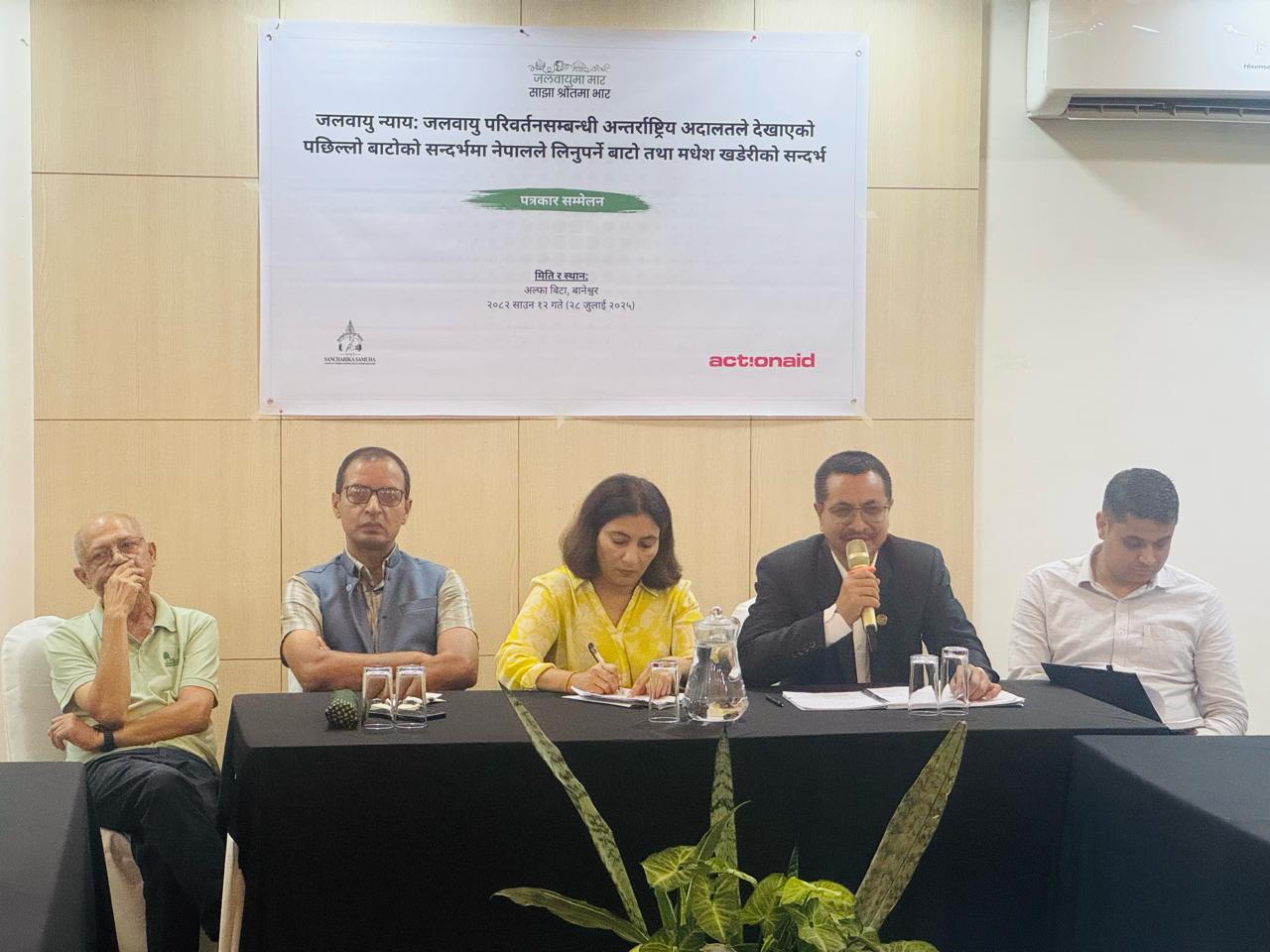 वरिष्ठ अधिवक्ता राजु चापागाईंले जलवायु न्यायका लागि सरकारलगायत सरोकार भएकाहरूले भावी पुस्ताको अधिकारलाई समेत ध्यान दिनुपर्ने बताए। उनले दुई पुस्ताबीचको अन्तरसम्बन्ध मजबुत बताउन जलवायु परिवर्तनका मुद्दा सम्बोधन गर्नुपर्ने धारणा राखे।