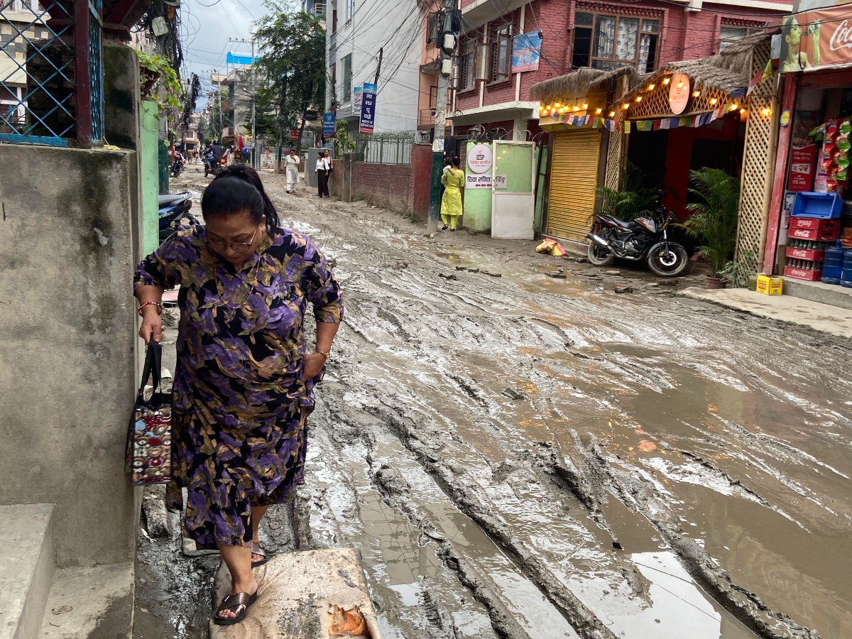 काठमाडौँ– “झरी परेपछि हिलाले बाटोमा हिँड्ने स्थिति हुँदैन। अरूको घरको भित्ता समाउँदै हिलाम्मे सडक पार गर्नुपर्ने स्थिति छ,” बुटवलकी सुभद्रा भट्टराई शंखमूलस्थित वडा नं ३१ को सडकको बिजोग देखेर भन्छिन्, “छि! सडक।”