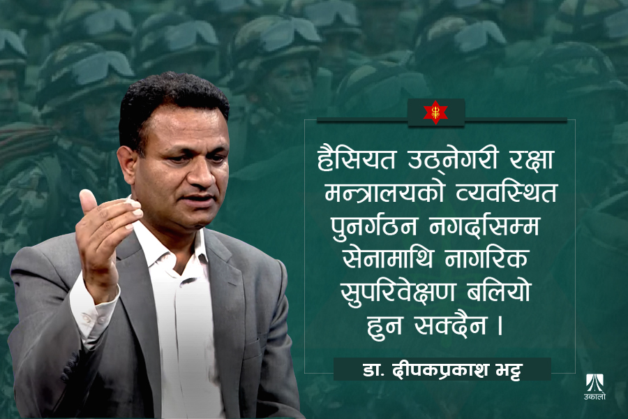 सेनालाई मात्रै दोष लगाउनु सही होइन। 'हामीसँग स्थिर सरकार नभएका कारण रक्षा मन्त्रालयमार्फत सेनाको उचित व्यवस्था गर्न सकेनौँ' भनेर हामी उम्कन त सकौँला, तर रक्षा मन्त्रालयलाई 'डम्पिङ' र 'पोस्ट अफिस' भन्दै समेत चर्चा गरियो। रक्षा मन्त्रालयको हैसियत माथि उठ्ने गरी रक्षा मन्त्रालयको व्यवस्थित पुनर्गठन गरिएन। त्यसो नगरिँदासम्म नागरिक सुपरिवेक्षणको संयन्त्र बलियो हुन सक्दैन। सेनालाई व्यावसायिक र पारदर्शी बनाउन सकिँदैन।