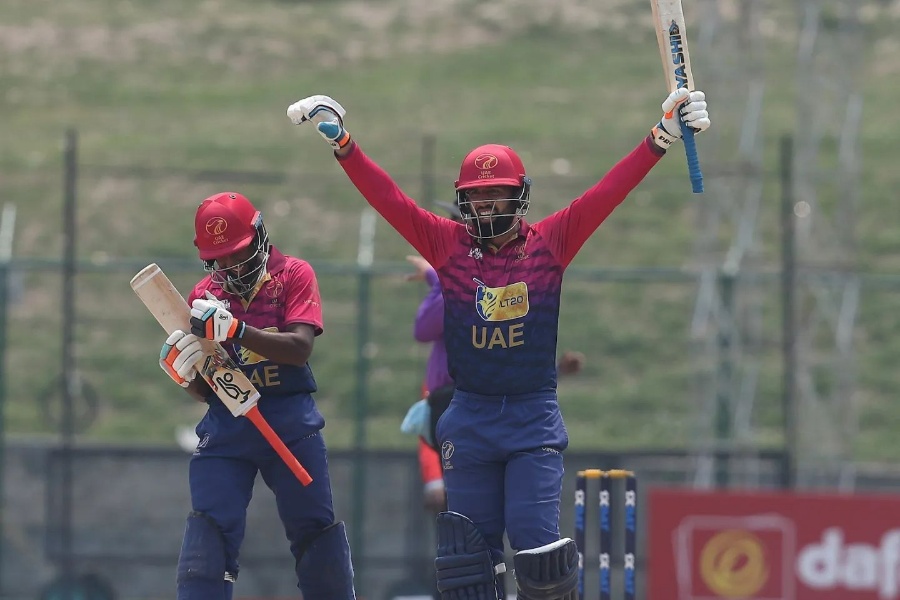 यूएईका वृत्यले १८५ रनको शतकीय इनिङ्स खेले। उनले १४७ बलमा १७ चौका र ९ छक्का प्रहार गरे। अनुभवी ब्याटर रोहन ११८ रनमा आउट भए। मुस्तफाले १२५ बलमा १० चौका र ४ छक्का प्रहार गरे।