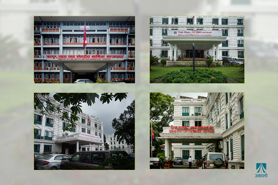 काठमाडौं– दसैँ, तिहार र छठको बिदा सकिएसँगै सरकारी कार्यालय खुले पनि देशको मुख्य प्रशासनिक केन्द्र सिंहदरबार सुनसान देखिन्छ। मन्त्रालयमा मन्त्री विरलै देखिए। कर्मचारीको संख्या पनि न्यून छ। सेवाग्राही पनि कमै देखिन्छन्।