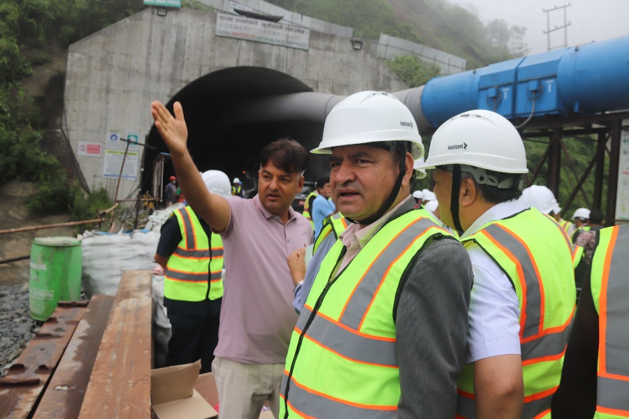 काठमाडौँ– भौतिक पूर्वाधार तथा यातायातमन्त्री प्रकाश ज्वालासहित उच्च अधिकारीसहितको टोलीले (नागढुंगा–सिस्नेखोला) सुरुङमार्गको आज अनुगमन गरेको छ।