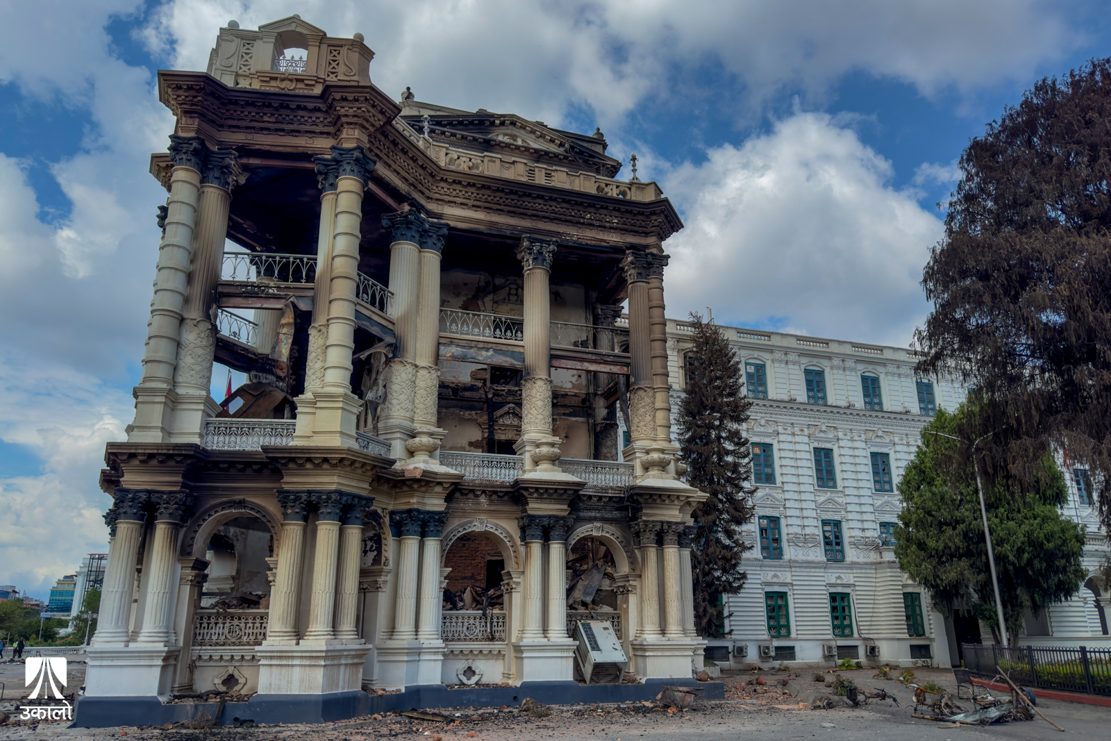 काठमाडौँ– भदौ २४ गतेको ‘जेनजी’ आन्दोलन हिंसात्मक बन्दा देशको प्रमुख प्रशासनिक केन्द्र सिंहदरबारमा ठूलो आगजनी र तोडफोड भयो। यस घटनामा प्रधानमन्त्री तथा मन्त्रिपरिषद्को कार्यालयसहित विभिन्न मन्त्रालयमा क्षति पुगेको छ। आगजनीबाट भवनका इँटा र काठ भत्किएका छन्। ध्वस्त भएको प्रधानमन्त्री कार्यालयको भवनबाट अझै पनि धुवाँ आइरहेको छ। पार्किङमा रहेका कैयन् सवारीसाधनहरू पनि जलेर खरानी भएका छन्। अहिले सिंहदरबार प्रवेश गर्दा विनाशको भयावह दृश्य देखिन्छ।