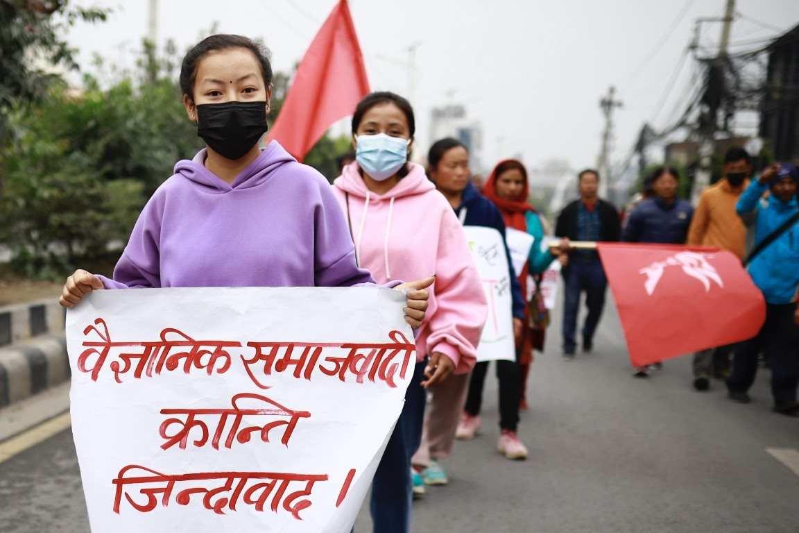 संयुक्त महिला संघ संघर्ष समितिद्वारा ११३ औँ अन्तर्राष्ट्रिय श्रमिक महिला दिवसको अवसरमा आयोजित र्याली ।