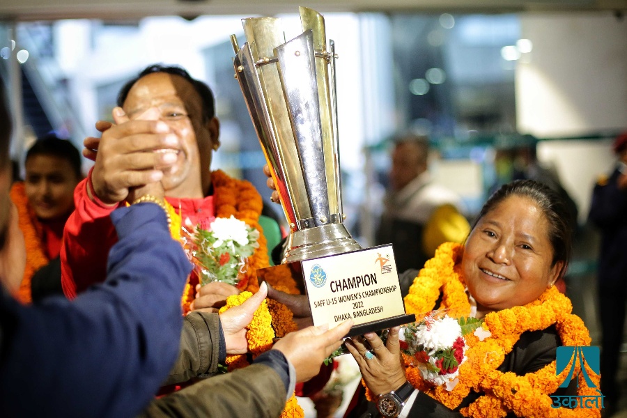 साफ यू-१५ महिला च्याम्पियनसिपको उपाधि जितेको नेपाली टोली शनिबार साँझ काठमाडौं फर्किएको छ।