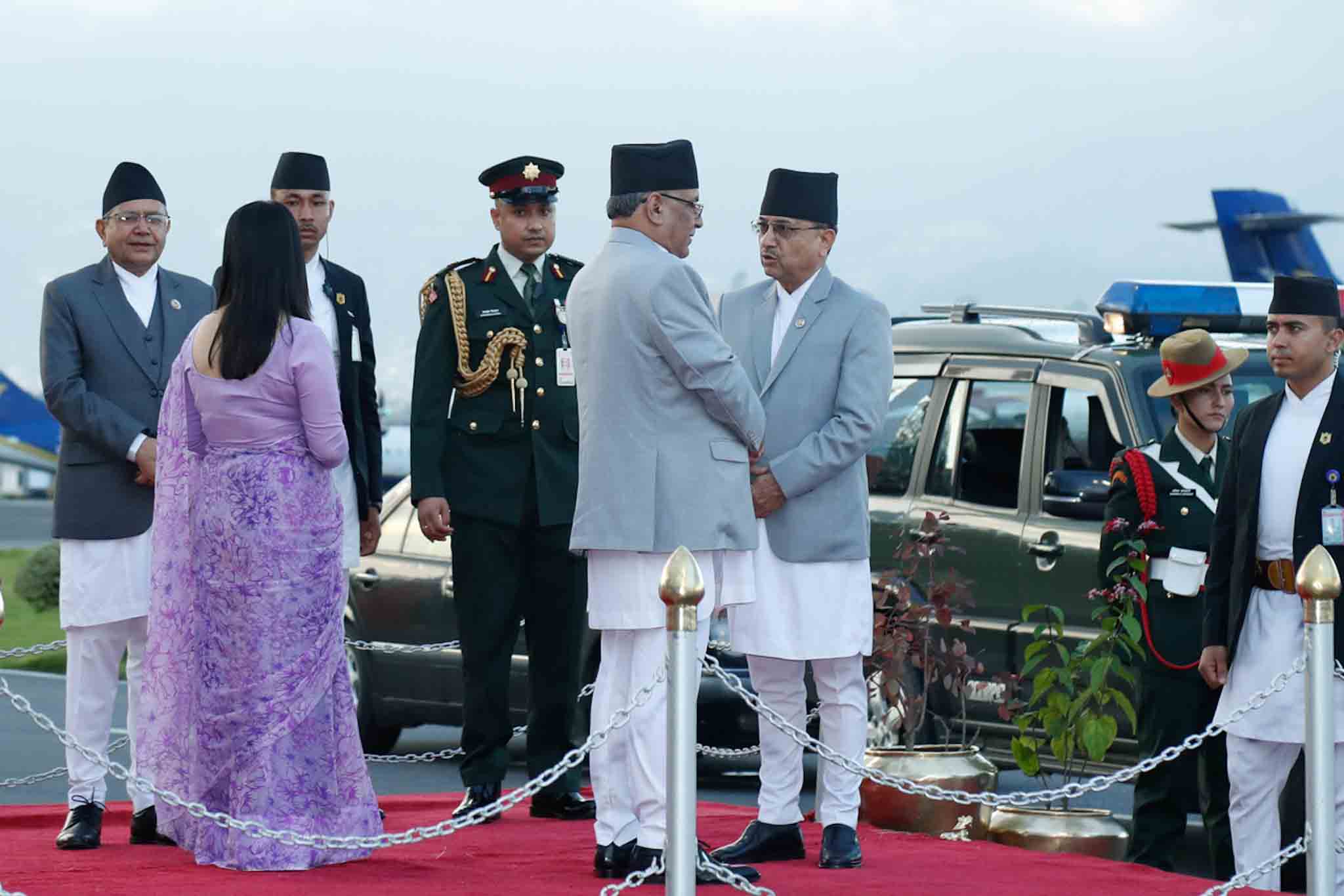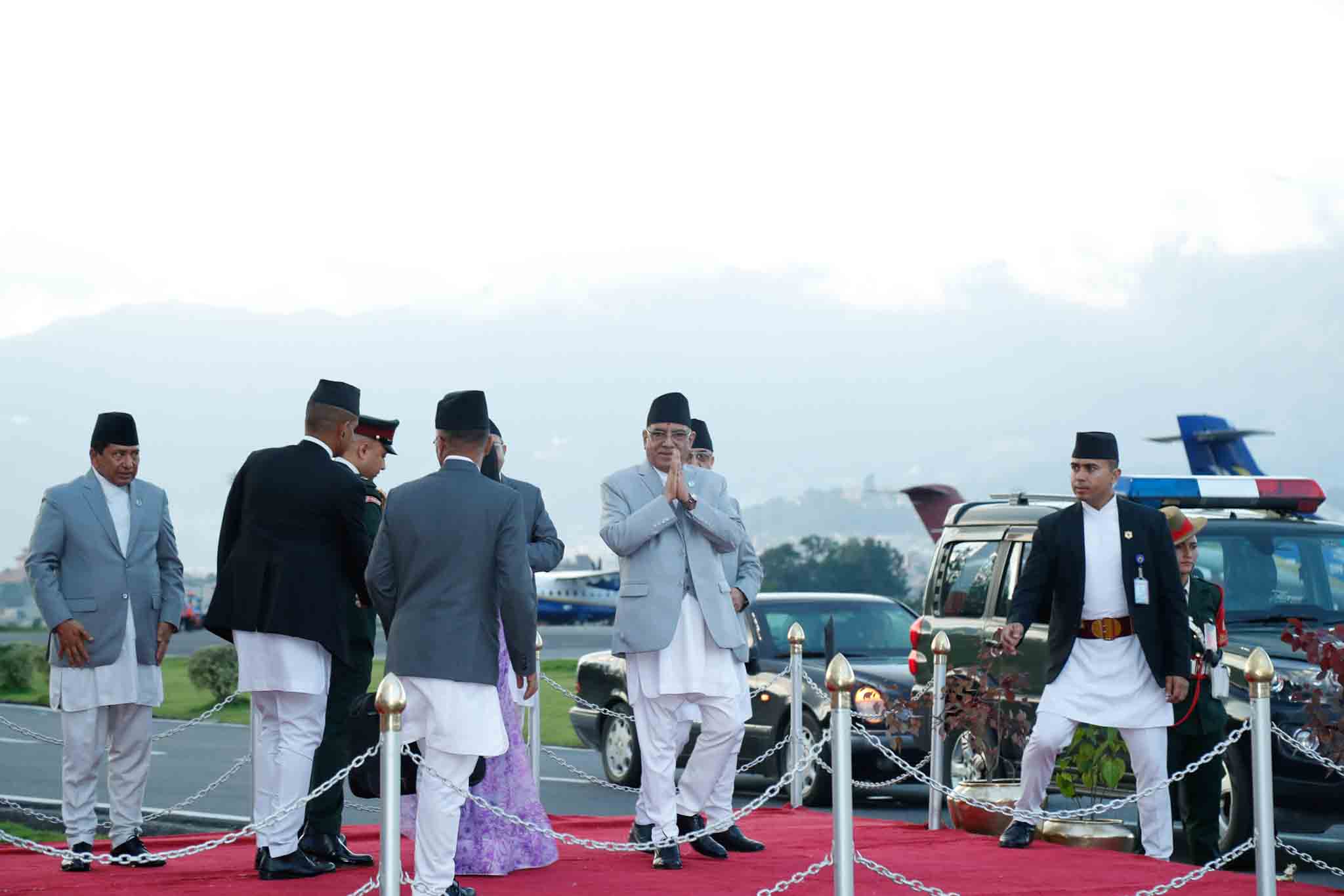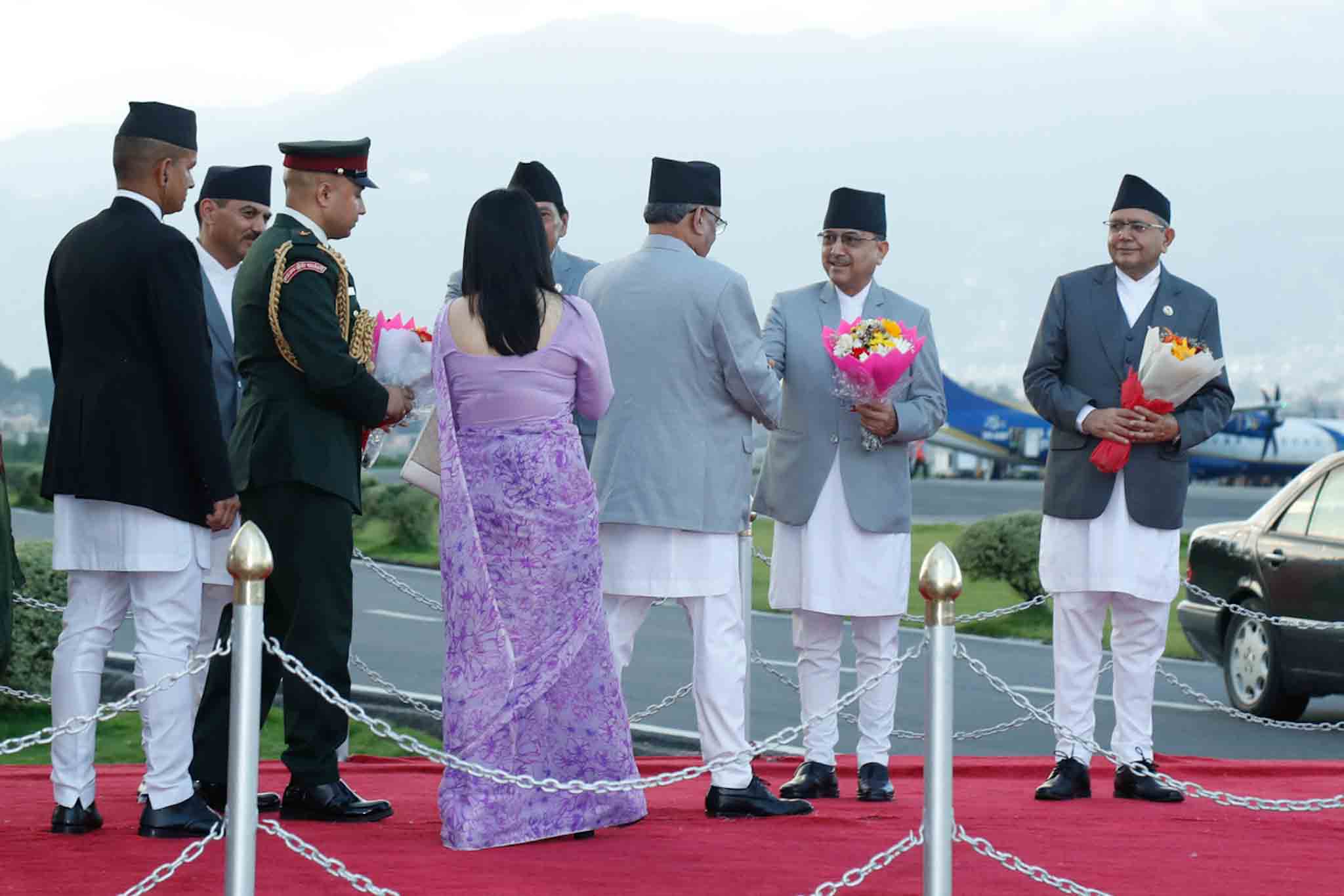 उनलाई त्रिभुवन अन्तर्राष्ट्रिय विमानस्थलको अति विशिष्ट कक्षमा उपप्रधानमन्त्री तथा रक्षामन्त्री पूर्णबहादुर खड्का, उपप्रधानमन्त्री तथा गृहमन्त्री नारायणकाजी श्रेष्ठ, सभामुख देवराज घिमिरे, मन्त्रीहरू, विशिष्ट कर्मचारी, संवैधानिक आयोगका प्रतिनिधिलगायत विशिष्ट पदाधिकारीले बिदाइ गरे।