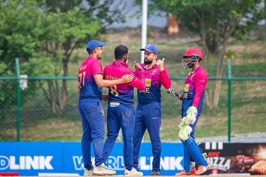 यूएईका अली नासिरले ३ विकेट लिए। जुनैद सिद्दिकले २ तथा मोहम्मद जवादुल्लाह र आयन खानले १–१ विकेट लिए।