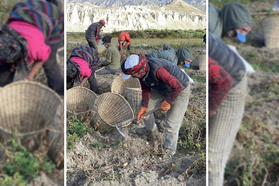 म्याग्दी– मुस्ताङको लोमान्थाङ गाउँपालिका–३ थिङगरका कृषकले बाँझो जमिनमा सामूहिक रूपमा व्यावसायिक आलुखेती गरेका छन्।