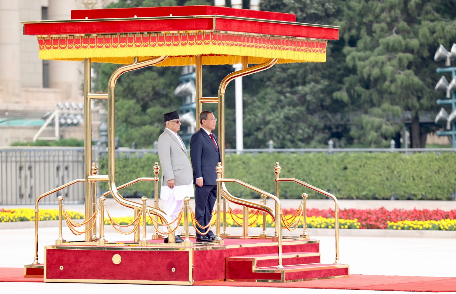 काठमाडाैँ– छिमेकी मित्रराष्ट्र चीनको भ्रमणमा रहेका प्रधानमन्त्री पुष्पकमल दाहाल ‘प्रचण्ड’ लाई बेइजिङस्थित ग्रेट हल अफ दि पिपलमा ‘गार्ड अफ अनर’ प्रदान गरिएको छ।