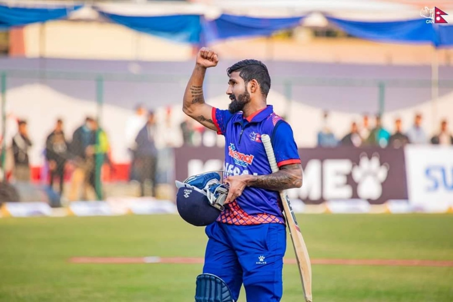 नेपालका कुशल मल्ल ५० बलमा ८ चौका र १२ छक्कासहित १३७ रनमा नटआउट रहे। दीपेन्द्रसिंह ऐरी १० बलमा ८ छक्कासहित ५२ रनमा नटआउट रहे।