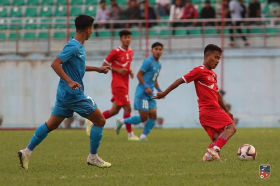 काठमाडाैँ– घरेलु टोली नेपाललाई टाइब्रेकरमा पराजित गर्दै साविक विजेता भारत साफ यू–१९ च्याम्पियनसिपको फाइनलमा पुगेको छ। त्रिपुरेश्वरस्थित दशरथ रंगशालामा बुधबार सम्पन्न खेलमा नेपाल टाइब्रेकरमा ३–२ गोलअन्तरले पराजित भएको हो। उपाधिका लागि अब भारतले शनिबार पाकिस्तानसँग खेल्ने छ। पाकिस्तान सडनडेथमा भुटानलाई ६–५ गोलअन्तरले पराजित गर्दै फाइनल पुगेको हो।