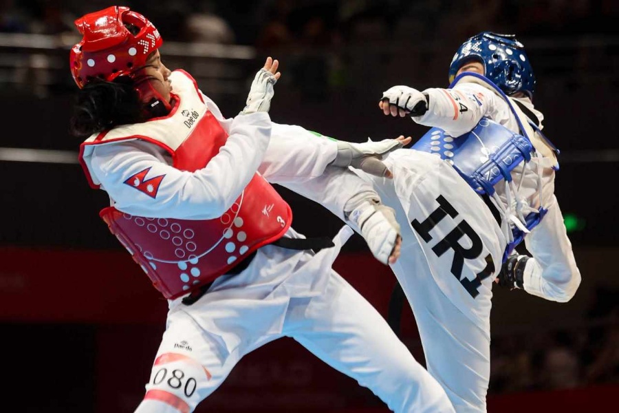 तेक्वान्दोमा नेपालबाट ११ खेलाडी सहभागी भएकोमा बुधबारसम्म १० खेलाडीको चुनौती सकिसकेको छ। बुधबार ३ खेलाडीले प्रतिस्पर्धा गरेका थिए। नेपालका अभिषेक बराल पुरुष ८० केजीको अन्तिम ३२ मा अफ्गानिस्तानका ओमिद साहाकसँग २–० ले पराजित भए। अभिषेक साहकसँग पहिलो चरणमा ११–१ र दोस्रो चरणमा १५–२ ले पछि परे। पुरुष ६८ केजीमुनि वीरबहादुर महारा अन्तिम १६ मा चाइनिज ताइपेईका यी जुई चिउसँग २–० ले नै पराजित भए। पहिलो चरणमा १०–० ले पछि परेका वीरले दोस्रो चरणमा केही सुधार गरेपनि १२–८ ले पछि परे।