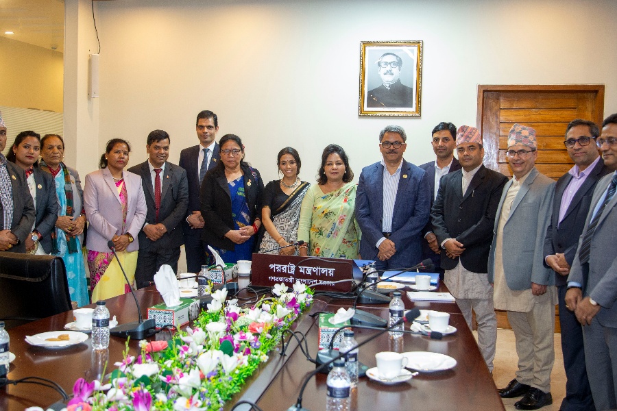 काठमाडौँ– कृषि, सहकारी तथा प्राकृतिक स्रोत तथा सुशासन समितिका सभापति डा आरजु राणा देउवाकाे नेतृत्वकाे ११ सदस्यीय संयुक्त संसदीय प्रतिनिधिमण्डलले बङ्गलादेशका सभामुख सिरिन सर्मिन चौधरीसँग शिष्टाचार भेट गरेको छ। त्यस अवसरमा दुवै पक्षले नेपाल र बंगलादेशबीचको आपसी सम्बन्ध विस्तारमा दुवै देशका संसदीय समितिले निर्वाह गरेका भूमिकाको सराहना गरेका थिए। ढाकास्थित नेपाली दूतावासका अनुसार मंगलबार भएको उक्त भेटमा दुवै पक्षले पारस्परिक सम्बन्धलाई अझ सुदृढ बनाउनेबारेमा विचार आदानप्रदान गरेका थिए। नेपाली संसदीय प्रतिनिधिमण्डलले कृषिमन्त्री डा मुहम्मद अब्दुर रज्जाकसँग पनि छलफल गरेको छ। भेटका अवसरमा दुवै पक्षले कृषि क्षेत्रमा सहकार्य तथा प्रविधि हस्तान्तणका साथै खाद्य सुरक्षा सुनिश्चित गर्नेतर्फ द्विपक्षीय सहयोग बढाउनुपर्नेमा जोड दिएको छ। नेपाली प्रतिनिधिमण्डलले परराष्ट्र राज्यमन्त्री मोहम्मद शाहरिर आलमसँग पनि भेट गरेको छ। त्यस अवसरमा दुवै पक्षबीच जलवायु परिवर्तन, दिगो विकास, खाद्य सुरक्षालगायत साझा चासोका विषयमा छलफल भएको थियो।