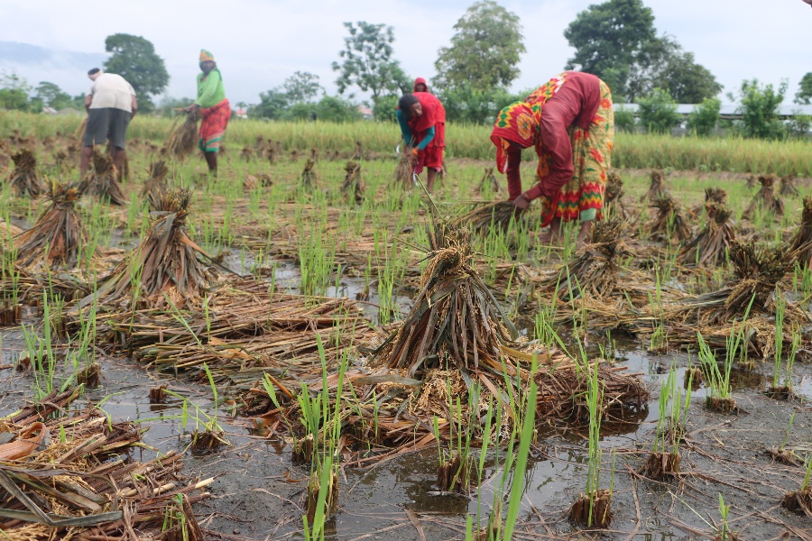 समयमा नै मल, बीउ र सिँचाइको असुविधाबीच लगाएर भित्र्याउन ठिक्क पारेको धान पानीले डुबाएपछि किसान चिन्तामा छन्।