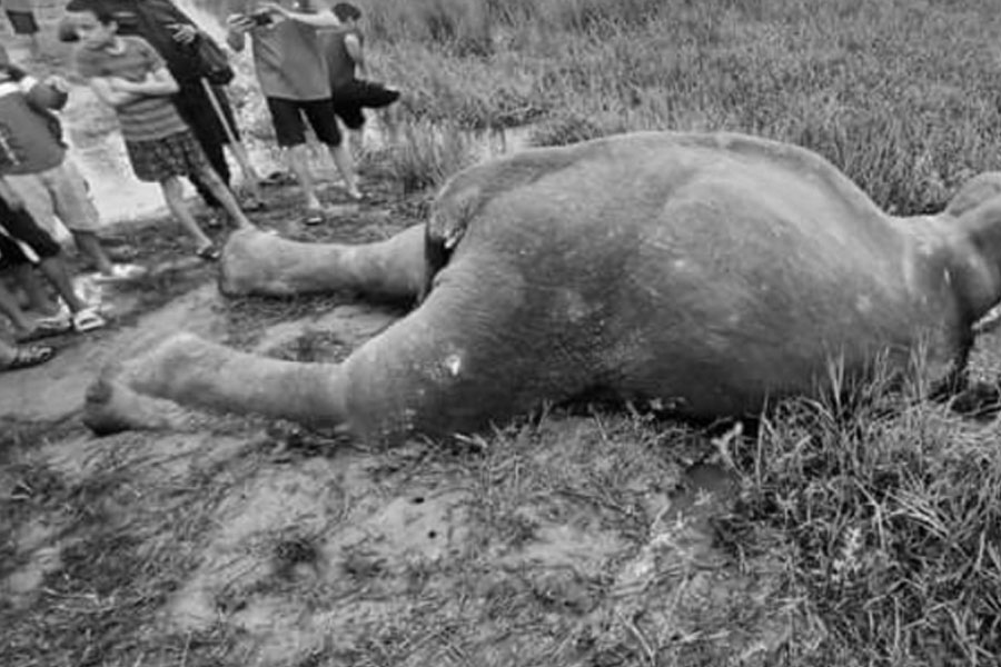 सिमसारको दलदलमा आधा डुबेको अवस्थामा हात्ती मृत फेला परेको डिभिजन वन कार्यालयले जनाएको छ।