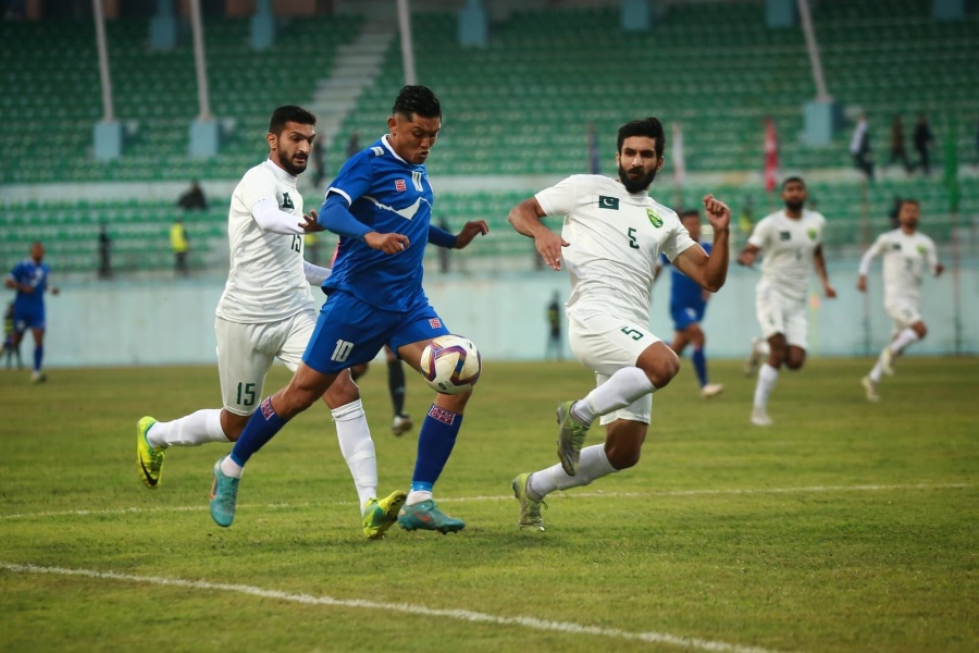 काठमाडौं– घरेलु टोली नेपालले मैत्रीपूर्ण खेलमा पाहुना टोली पाकिस्तानलाई पराजित गरेको छ। बुधबार त्रिपुरेश्वरस्थित दशरथ रंगशालामा सम्पन्न खेलमा नेपालले पाकिस्तानलाई १-० गोलले पराजित गरेको हो।