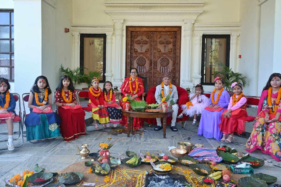 काठमाडौँ– राष्ट्रपति रामचन्द्र पौडेलले बडादशैँका अवसरमा नवदुर्गाको अवतारस्वरूप महानवमीको दिन सोमबार नवकन्या (९ कन्या)को पूजाअर्चना गरेका छन्। विशेष समारोहका बीच राष्ट्रपति पौडेलले शीतल निवासमा नवकन्याको पूजा गरेका हुन्।