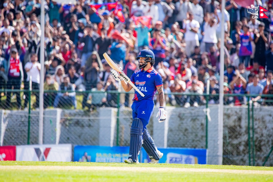 त्रिवि क्रिकेट मैदानमा टस हारेर ब्याटिङको निम्तो पाएको नेपालले निर्धारित २० ओभरमा ८ विकेट गुमाएर १६२ रन बनाएको हो। नेपालको तर्फबाट कुशल भुर्तेलले २९ बलमा ५० रन बनाएर आउट भए । यस्तै करण केसीले २३, दीपेन्द्रसिंह ऐरीले २० र कप्तान रोहित पौडेलले १८ रन जोडे।