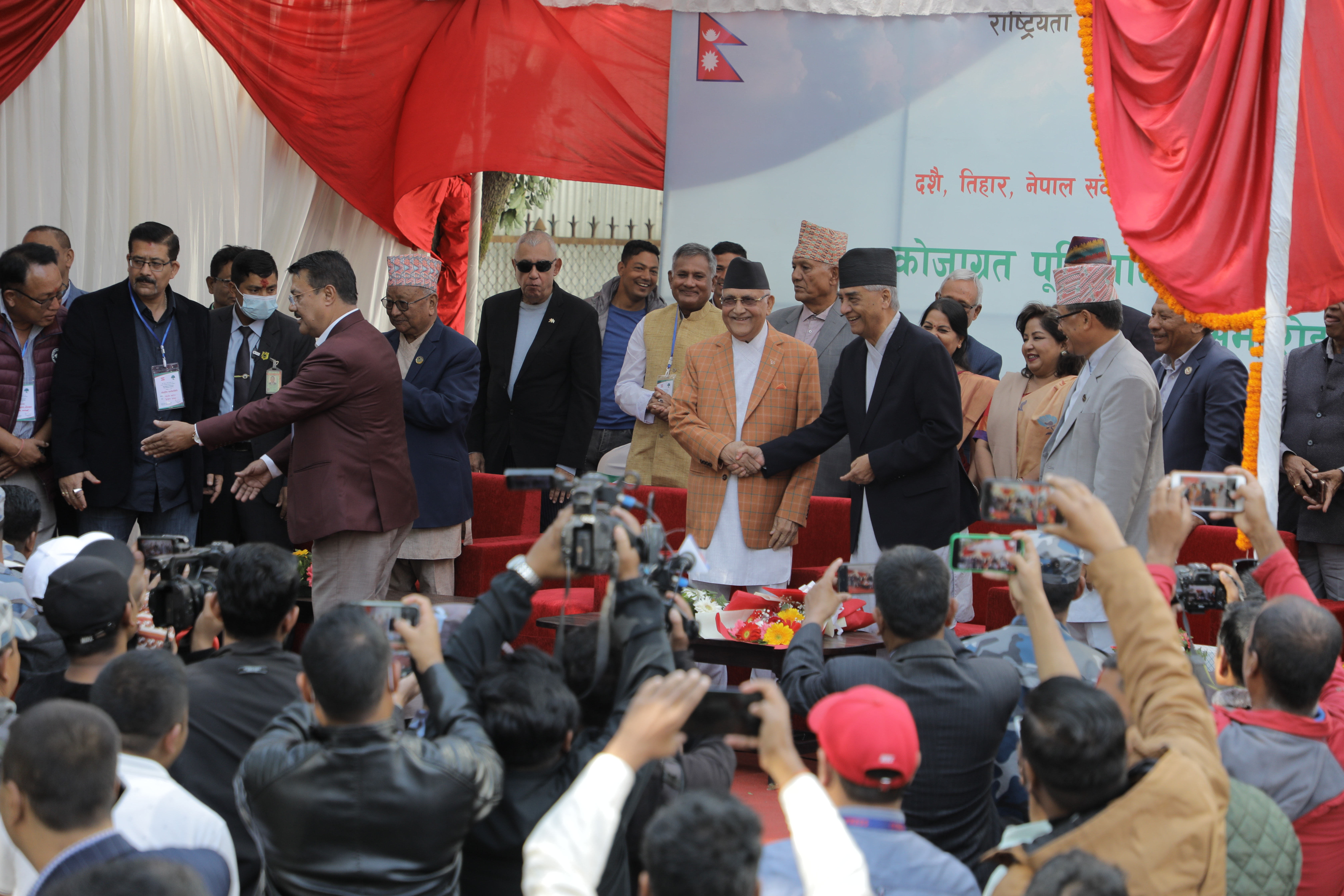 काठमाडौँ– नेकपा एमाले अध्यक्ष एवं पूर्वप्रधानमन्त्री केपी शर्मा ओलीले ठूला दलमाथि प्रश्न उठेको नभई उठाउने प्रयास मात्र गरिएको बताएका छन्। शनिबार नेपाली कांग्रेसले ललितपुरको सानेपास्थित केन्द्रीय कार्यालयमा आयोजना गरेको शुभकामना आदानप्रदान तथा चियापान कार्यक्रममा एमाले अध्यक्ष ओलीले आफूहरूले यथासमयमा यसको जवाफ दिने जिकिर गरे।