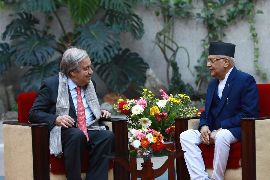 चारदिने नेपाल भ्रमणमा आएका महासचिव गुटेरेससँग एमाले अध्यक्ष ओलीसहितका नेताहरूले भेटवार्ता गरेका थिए।