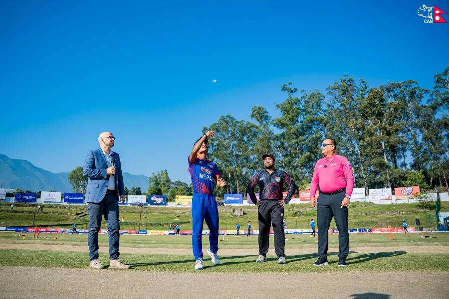 कीर्तिपुरस्थित त्रिवि क्रिकेट मैदानमा भएको टसमा सिंगापुरका कप्तान अरित्र दत्तले टस जितेर पहिला ब्याटिङ गर्ने निर्णय लिएका हुन्।