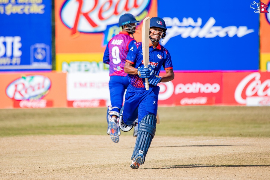 उनले यसअघि मलेसिया, मंगोलिया, माल्दिभ्स र यूएईविरुद्ध अर्धशतक प्रहार गरेका थिए। यता, तल्लो क्रमका करण केसी ६ बलमा १ चौका र २ छक्कासहित २० रन बनाए।