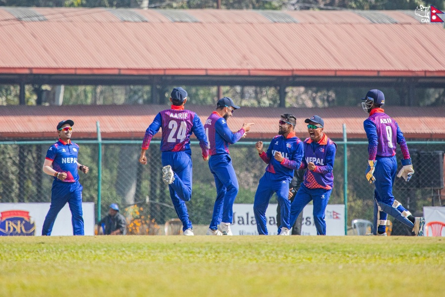 त्यसपछि आएका रोहन मुस्तफाले ४ रन बनाए। यस्तै, बसिल हामिद ८, विष्णु सुकुमारन २, अहमद राजा र जहुर खान खान शून्य रनमा आउट भए। नेपालका लागि गुलशन झा, दीपेन्द्रसिंह ऐरी र कुशल भुर्तेलले २/२ विकेट लिए।