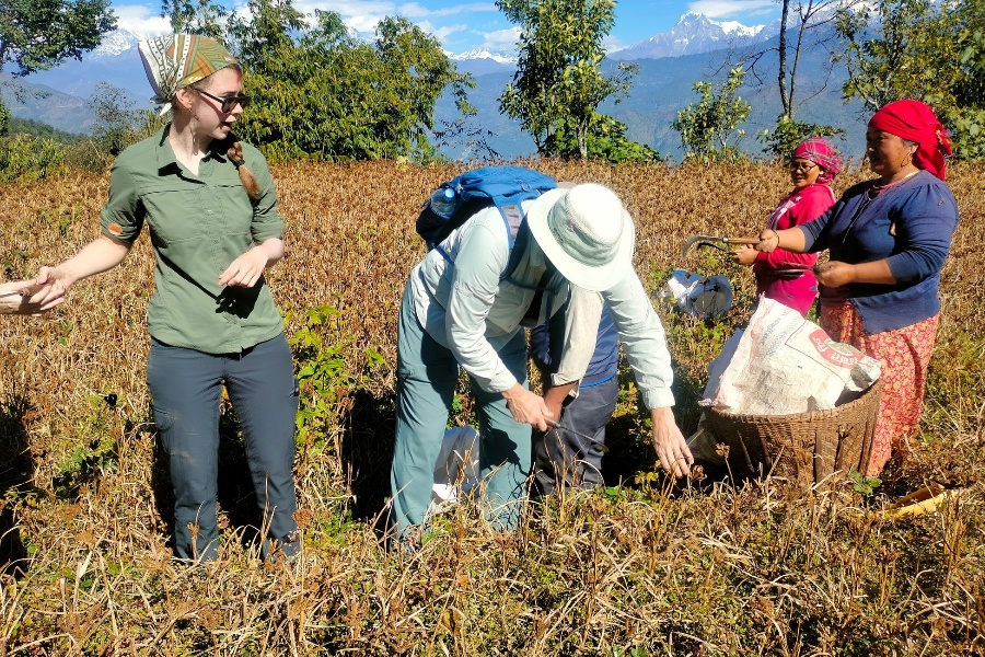 गलकोट– यसै साता ६ जना विदेशी पर्यटक बागलुङको पर्यटकीय गाउँ भकुन्डे पुगेका छन्। उनीहरू त्यहाँ कोदो टिप्नमा रमाइरहेका भेटिन्छन्। पाहुना भएर त्यहाँ पुग्छन् र सहयोगी भएर फर्किने गरेका छन्।