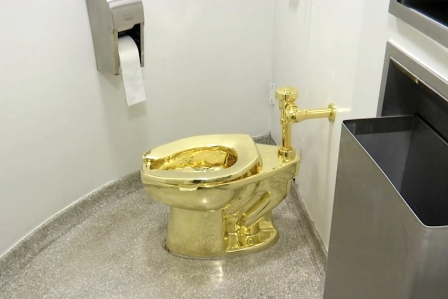 २०१९ को सेप्टेम्बरमा चोरी हुनुभन्दा अगाडि उक्त शाैचालय प्रदर्शनीको लागि राखिएको थियो। 'अमेरिका' नाम गरेको कलाकृत उक्त चर्पी इंग्ल्यान्डको ब्लेनहाइम दरबारबाट चोरी भएको थियो। बेलायती युद्धकालका नेता विन्स्टन चर्चिलको जन्मस्थल र पुर्ख्यौली घर ब्लेनहाइम प्यालेस प्रमुख पर्यटकीय केन्द्र र युनेस्को विश्व सम्पदा स्थल पनि हो।
