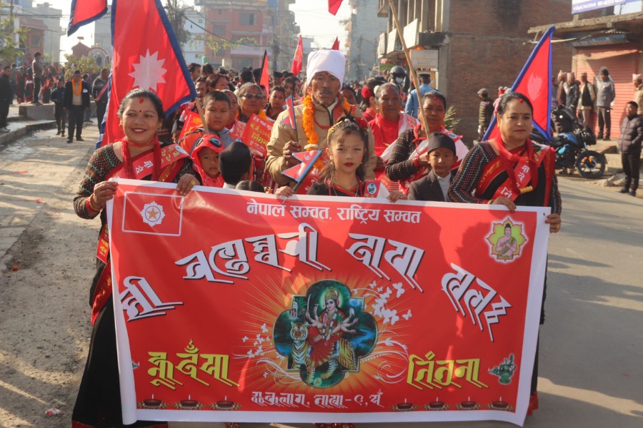 नेवार समुदायले देशका विभिन्न स्थानमा र्याली निकालेर नयाँ वर्षको स्वागत गरेका छन्। काठमाडौँको वसन्तपुर, ललितपुरको पाटन, भक्तपुरमा नयाँ वर्षको न्हु दँया भिन्तुना (शुभकामना) र्याली निकालिएको छ।