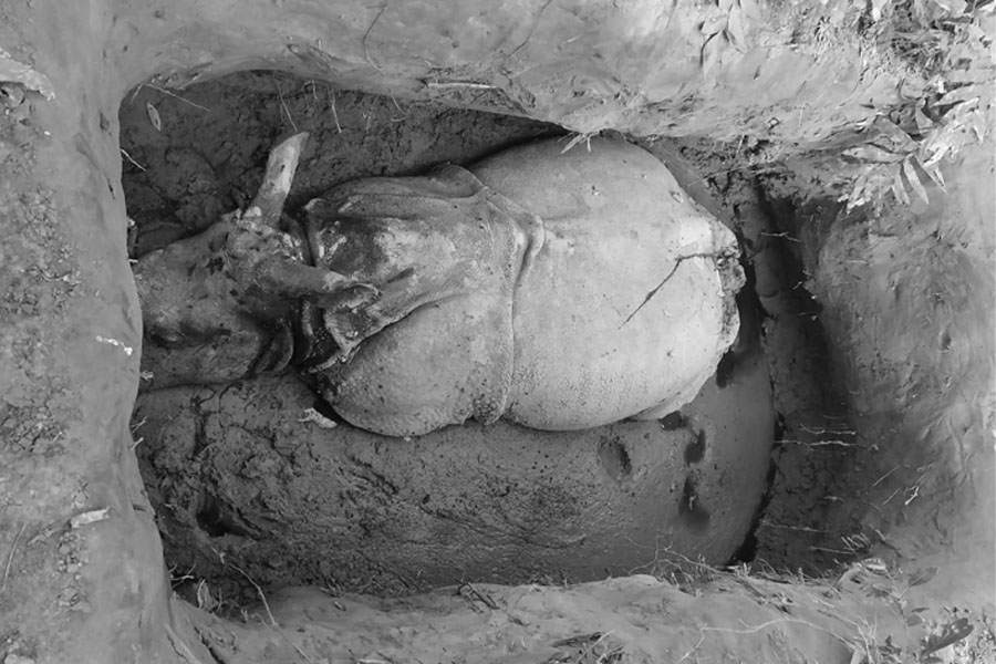 उनका अनुसार अन्दाजी छ वर्ष र १८ वर्षका पोथी गैँडा खाल्डोमा मारिएको अवस्थामा भेटिएका हुन्। दुवै गैँडा खागविहीन अवस्थामा मृत भेटिएका छन्। “गैँडाको खाग काटिएको देखिएको छ,” उनले भने।