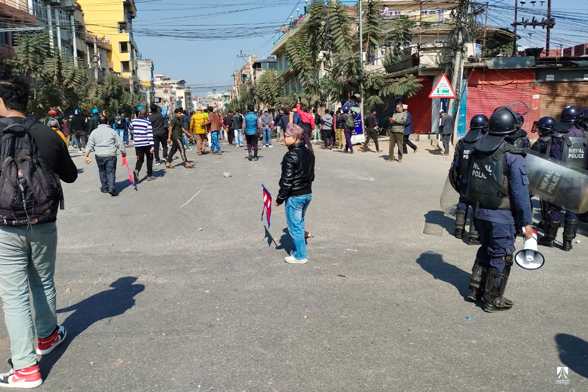 रातो क्याप लगाएर आएका कार्यकर्तामाथि प्रसाईं समूहले ढुंगा प्रहार गरेका थिए। त्यसपछि भागाभागको स्थिति बनेको थियो। प्रसाईं समूहले उनीहरूको मोटरसाइकल लडाइदिएका थिए।