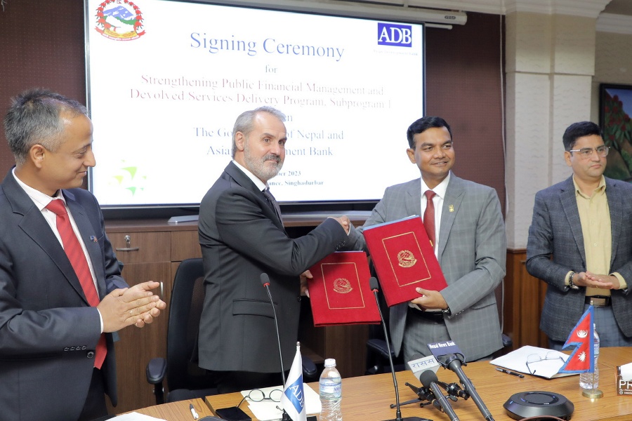 काठमाडौँ– सार्वजनिक वित्त व्यवस्थापन र सेवा प्रवाह सुदृढीकरण कार्यक्रम कार्यान्वयनका लागि नेपाल सरकार र एशियाली विकास बैंक (एडीबी)बीच १३ अर्ब ३३ करोड रुपैयाँ बराबरको सहुलियतपूर्ण ऋण सम्झौता भएको छ।