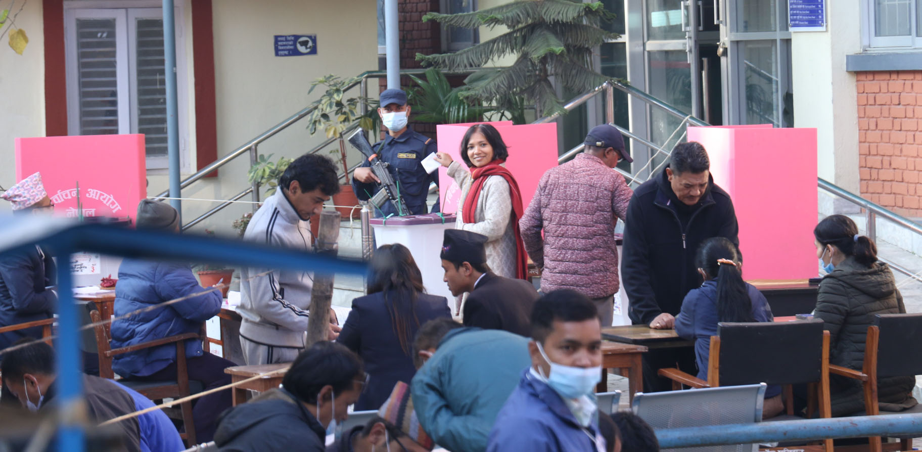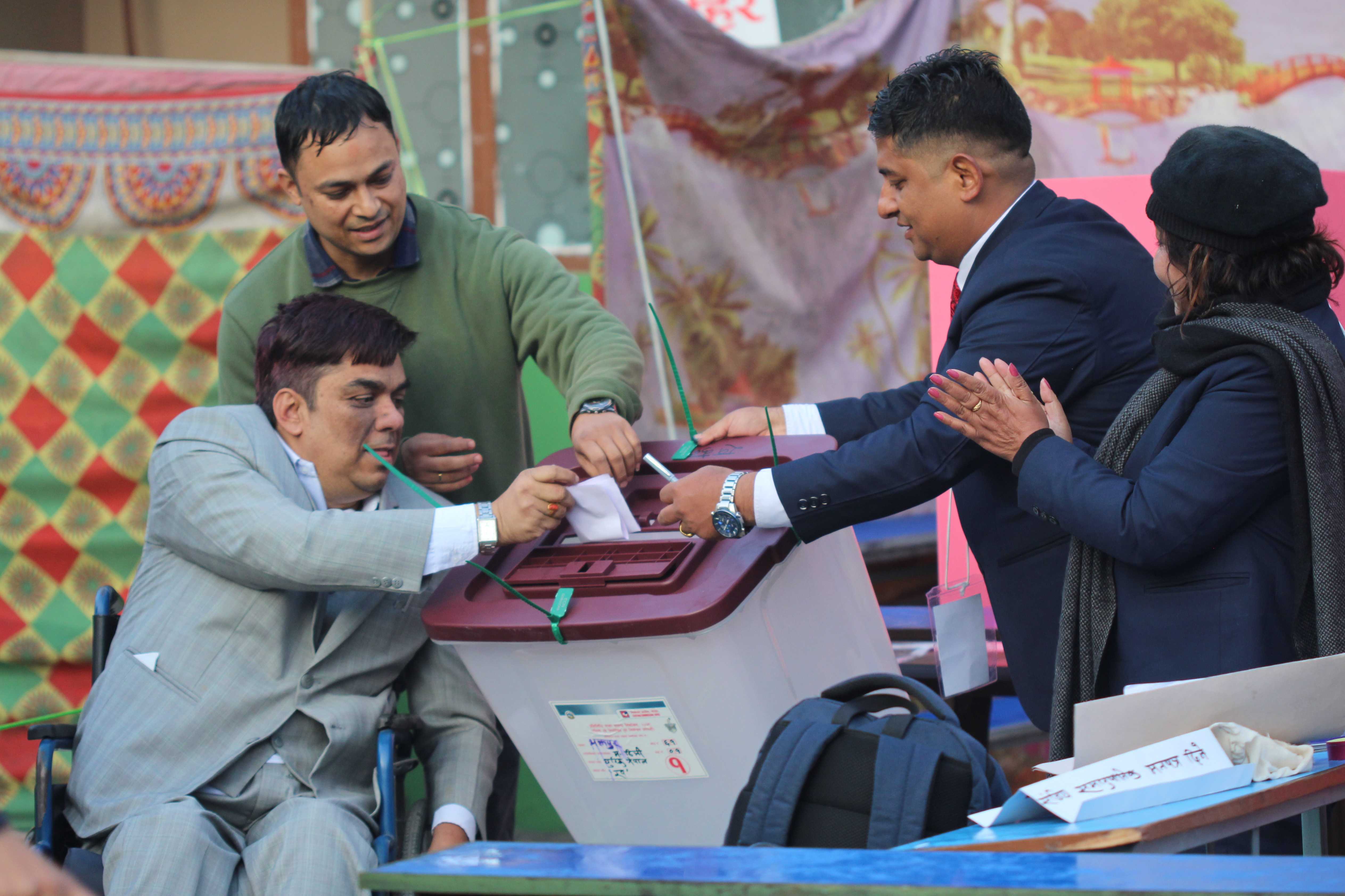 मतदान केन्द्रमा महिला मतदाताको सङ्ख्यासमेत उल्लेख्यरूपमा देखिएको छ। ज्येष्ठ नागरिक, अपाङ्गता भएका व्यक्ति तथा अशक्त र गर्भवतीलगायतलाई सहज मतदानका लागि प्राथमिकता दिने व्यवस्था गरिएको छ। मतदाताले निर्वाचनका लागि तयार गरिएको चार वटा बेग्लाबेग्लै मतपत्रमा स्वस्तिक छाप लगाई मतदान गर्नुहुनेछ।