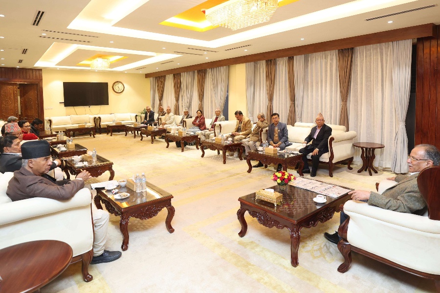 बैठकमा प्रधानमन्त्री दाहालसहित कांग्रेस सभापति शेरबहादुर देउवा, एकीकृत समाजवादीका अध्यक्ष माधवकुमार नेपाल, जसपा सहअध्यक्ष राजेन्द्र श्रेष्ठ, मुख्यसचिव डा. वैकुण्ठ अर्याल लगायतको उपस्थिति थियो।