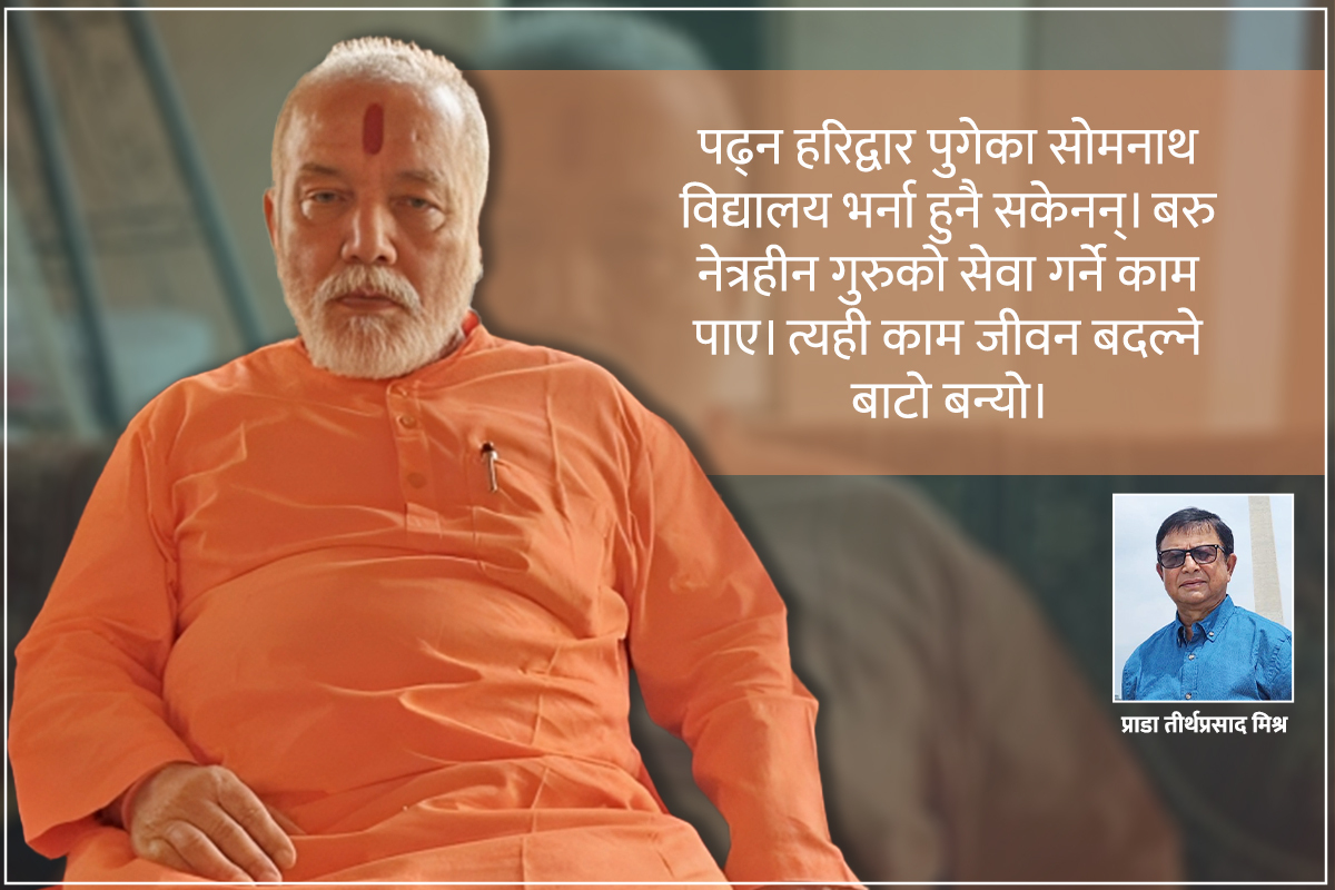 तिनै महाराजको हेरचाह गर्ने दायित्व पाएका सोमनाथले औपचारिक शिक्षालयमा भर्ना भई पढ्ने मौका नै पाएनन्। गुरुजीसँग हरिद्वार तथा हिन्दुस्तानका अनेकौँ तीर्थस्थल एवम् धामको यात्रामा गुरुजीका विश्वासी बने, भक्त बने, योजनाकार बने र कार्यान्वयनकर्ता बने। गुरुजीको मानमर्यादा सर्वत्र थियो। स्रोतको कुनै कमी थिएन। जे चाहना गर्यो भक्तहरूले सोही पुर्याउँथे। कालान्तरमा गुरुजीकै चाहनाअनुसार हरिद्वारमा उदासीन आश्रम बन्यो, जहाँ साधुसन्तका अलावा विद्यार्थीहरूलाई पनि बस्ने खाने र पढ्ने सुविधा प्राप्त भयो। त्यही आश्रममा बसेर धेरै नेपालीसमेत उच्च शिक्षा हासिल गरी आ–आफ्नो क्षेत्रमा स्थापित भए।