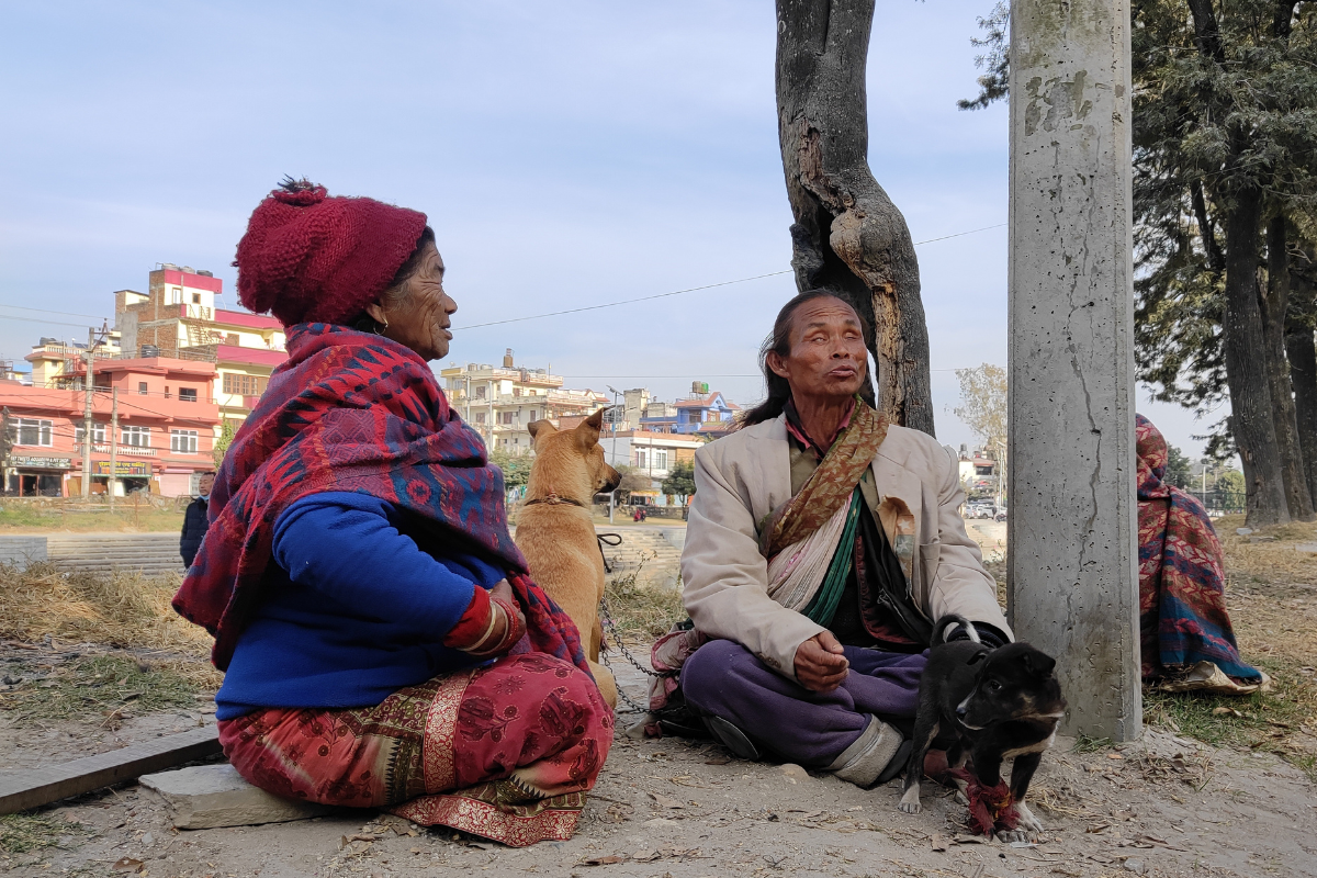 यो जोडी गुह्येश्वरीमा माग्न बसेको वर्षौं भइसकेको छ। उनीहरू गोठाटारबाट हिँडेर हरेक दिन बिहान १० बजे आसपास गुह्येश्वरी पुग्छन्। दिनभरि उही ठाउँमा बस्छन्। कान्छी भन्छिन्, “भक्तजनले दिनुभयो भने कहिलेकाहीँ ४–५ सय उठ्छ। कहिले रित्तो हात फर्किनुपर्छ।”