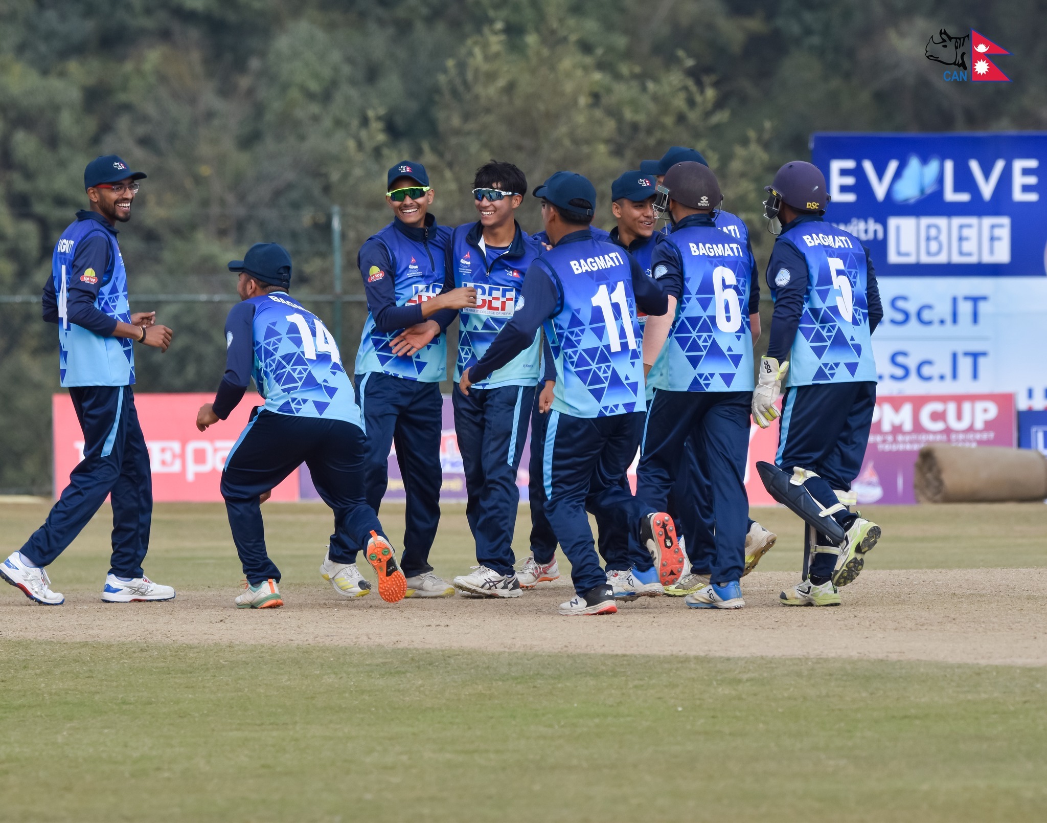 मंगलबार सम्पन्न तेस्रो खेलमा बागमतीले मधेश प्रदेशलाई ८६ रनले पराजित गरेको हो। बागमतीले दिएको १९१ रनको लक्ष्य पछ्याएको मधेश २९ ओभरमा सबै विकेट गुमाउँदै १०४ रनमा समेटियो।